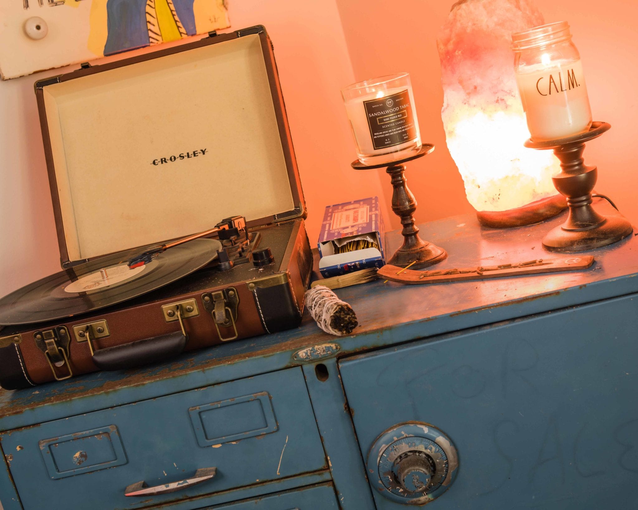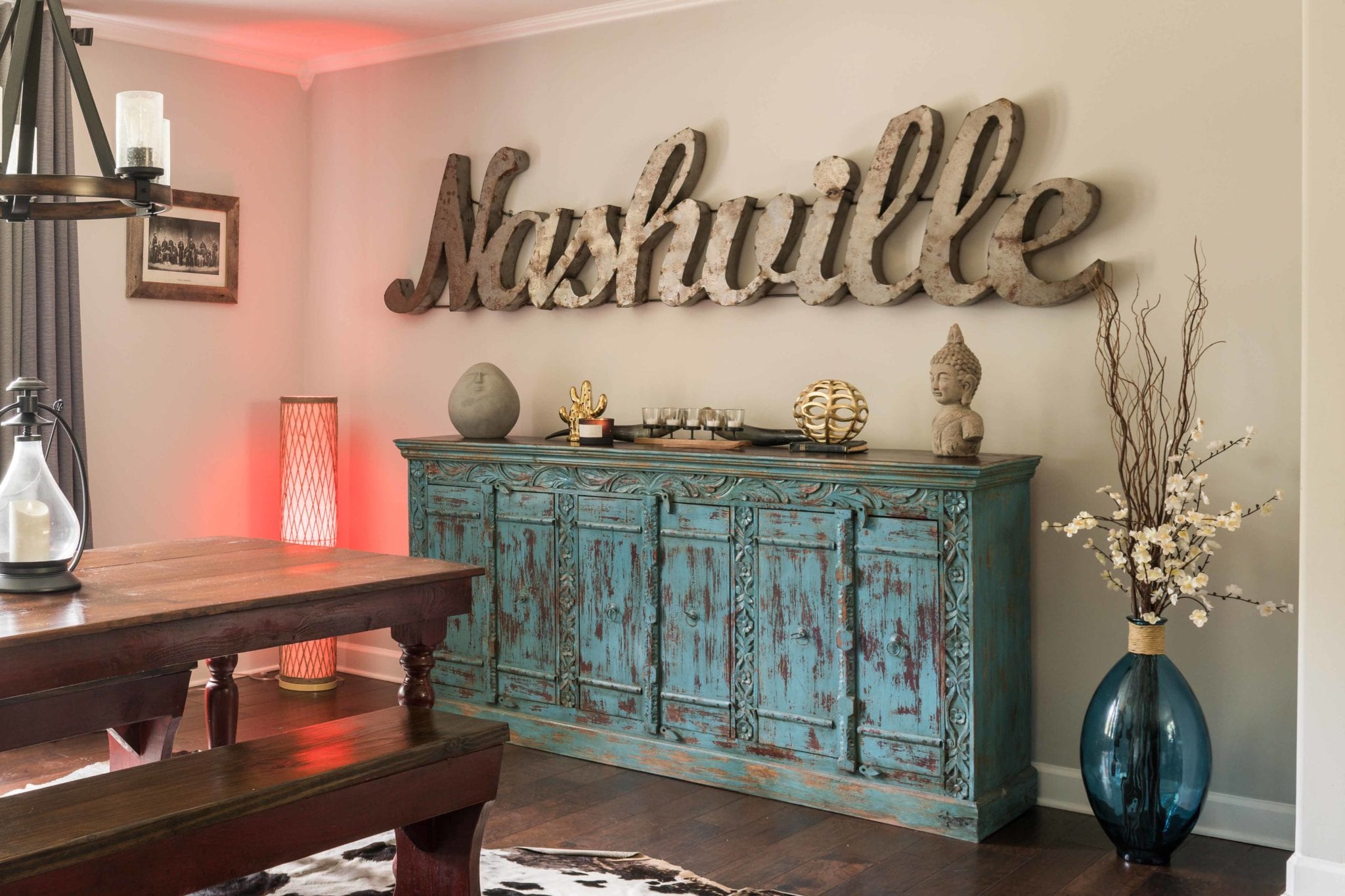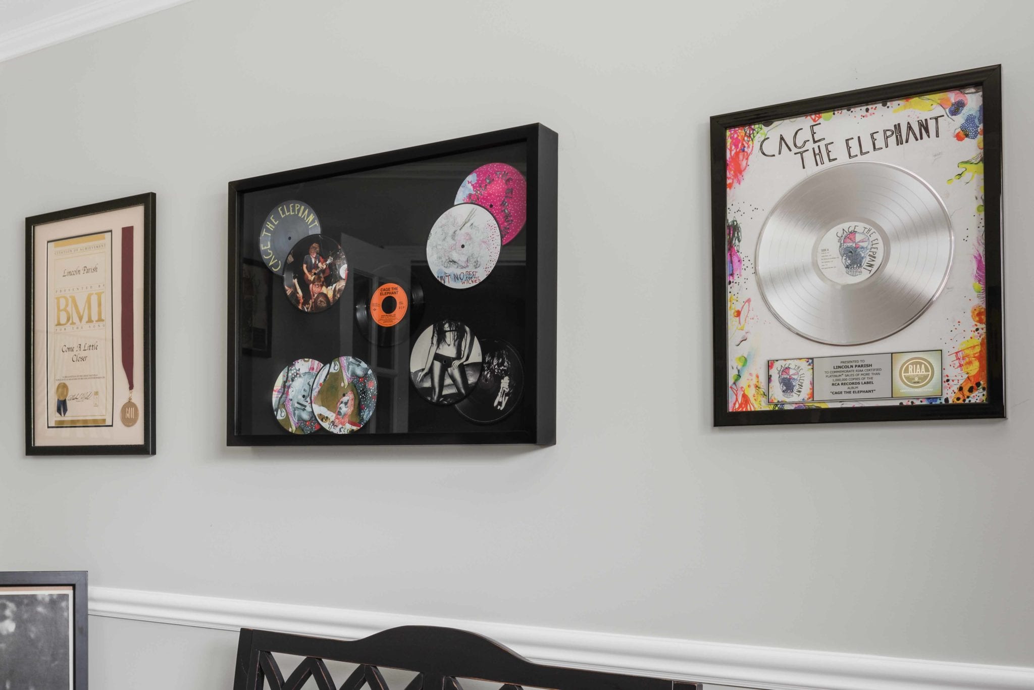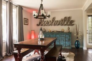 His taste is eclectic, and art is important. And for Parish, it is almost as much about the hunt as it is the find. He has some painted cabinets from an antique store in Bowling Green, and an old school safe painted blue from a nearby antique store. He loves the Nashville Flea Market and has lots of art amassed from touring, including one piece he got right off the walls of The House of Blues in Orlando. It wasn’t for sale, but since Cage the Elephant had sold out the venue they made an exception.