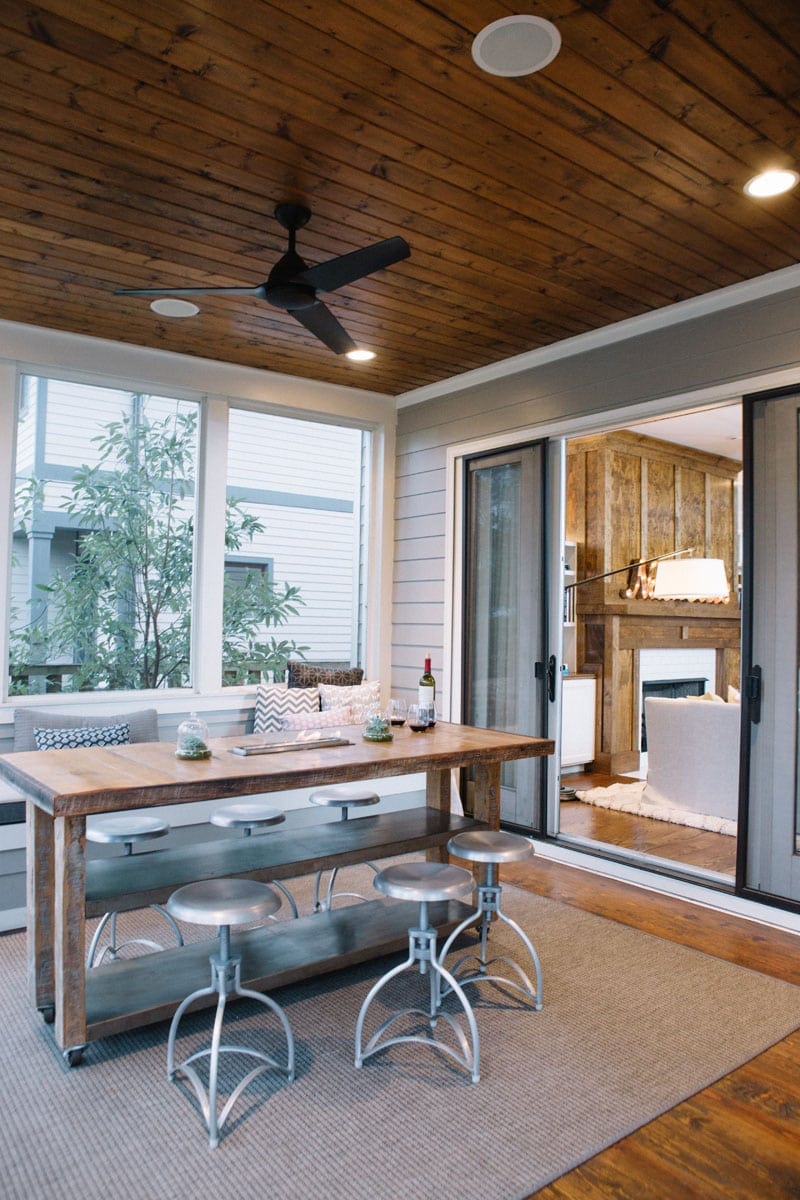 The mantel is also something special. It’s oversized, because Davis thought it helped blend the contemporary elements with the historic brick wall, and it’s a major upgrade from the smaller mantel it replaced.