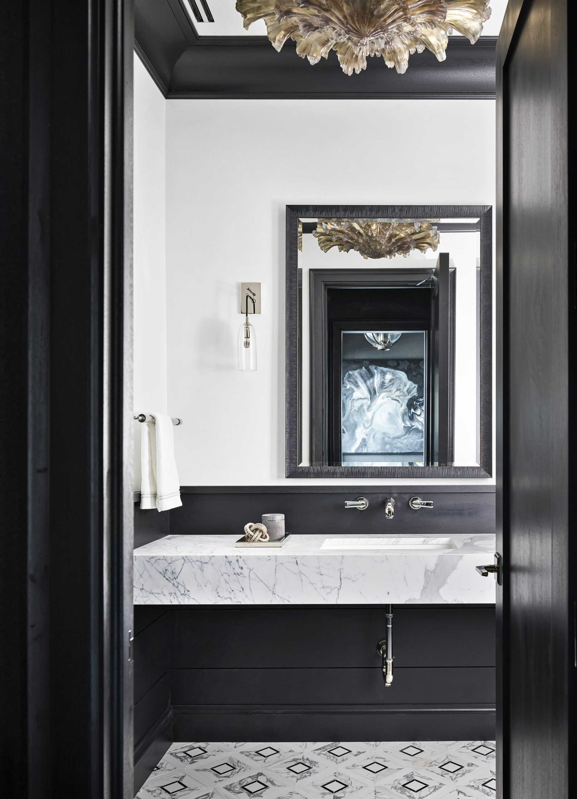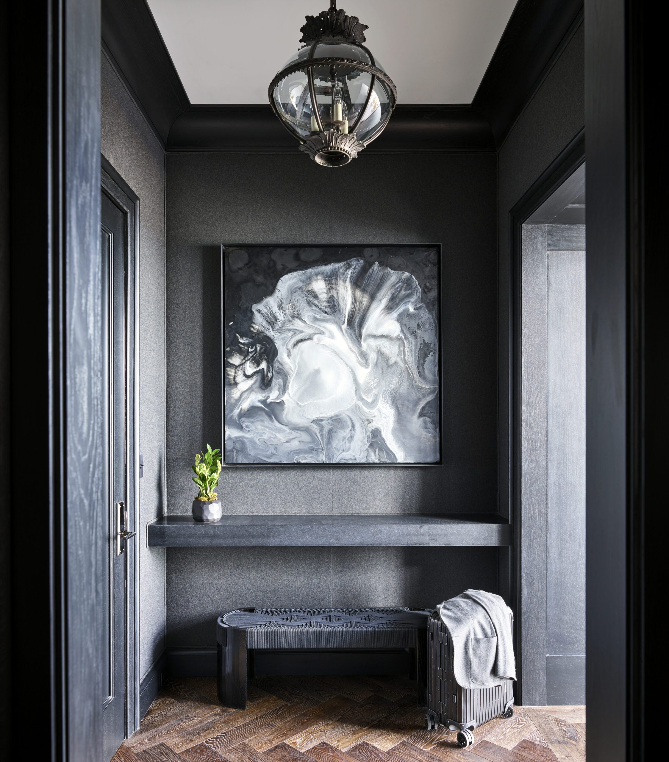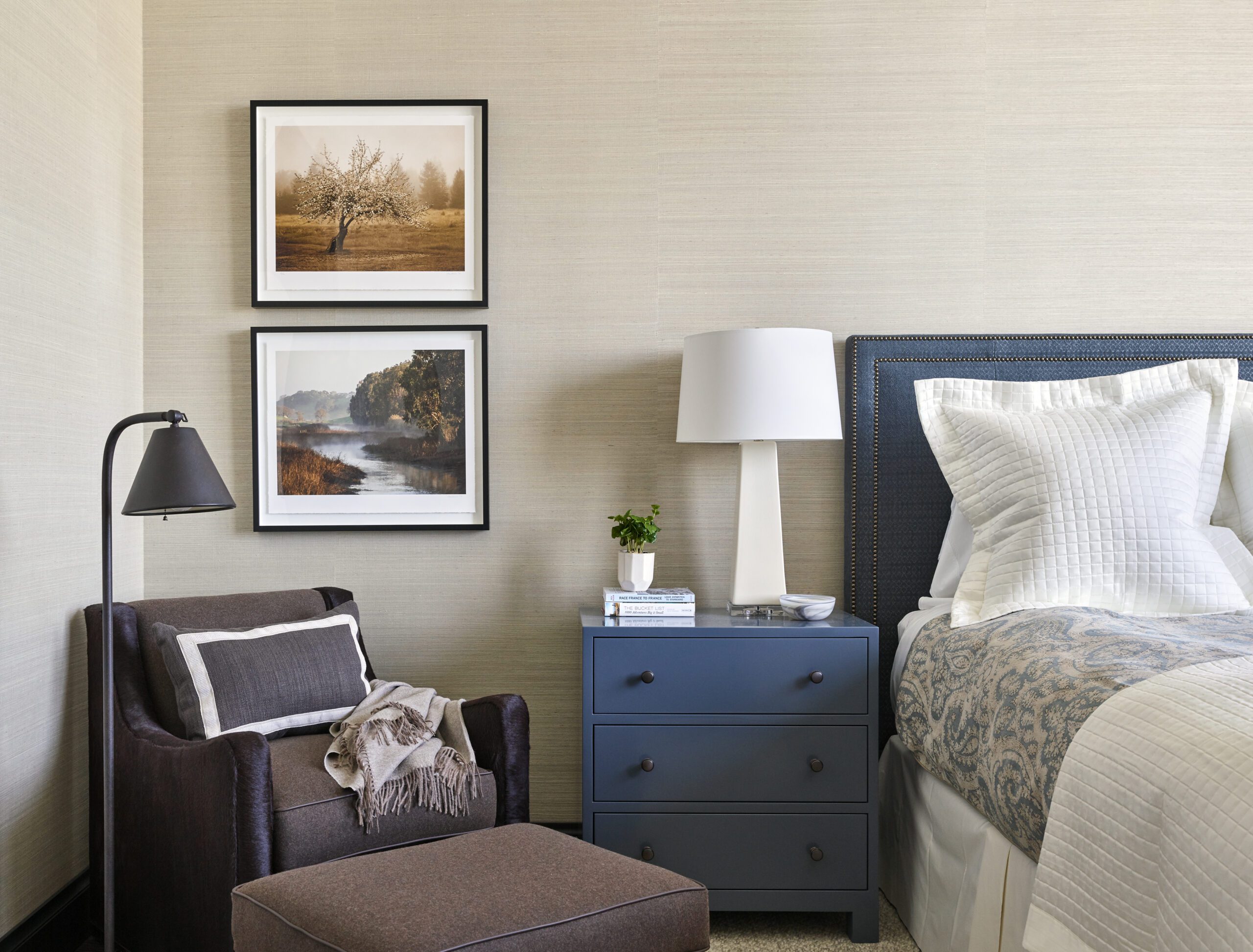 Ponterio also selected abstract, organic pieces from one of his favorite Chicago artists, Lonney White, to center the space, as well as lighting and furniture from his own collections with Avrett and Lee Jofa.