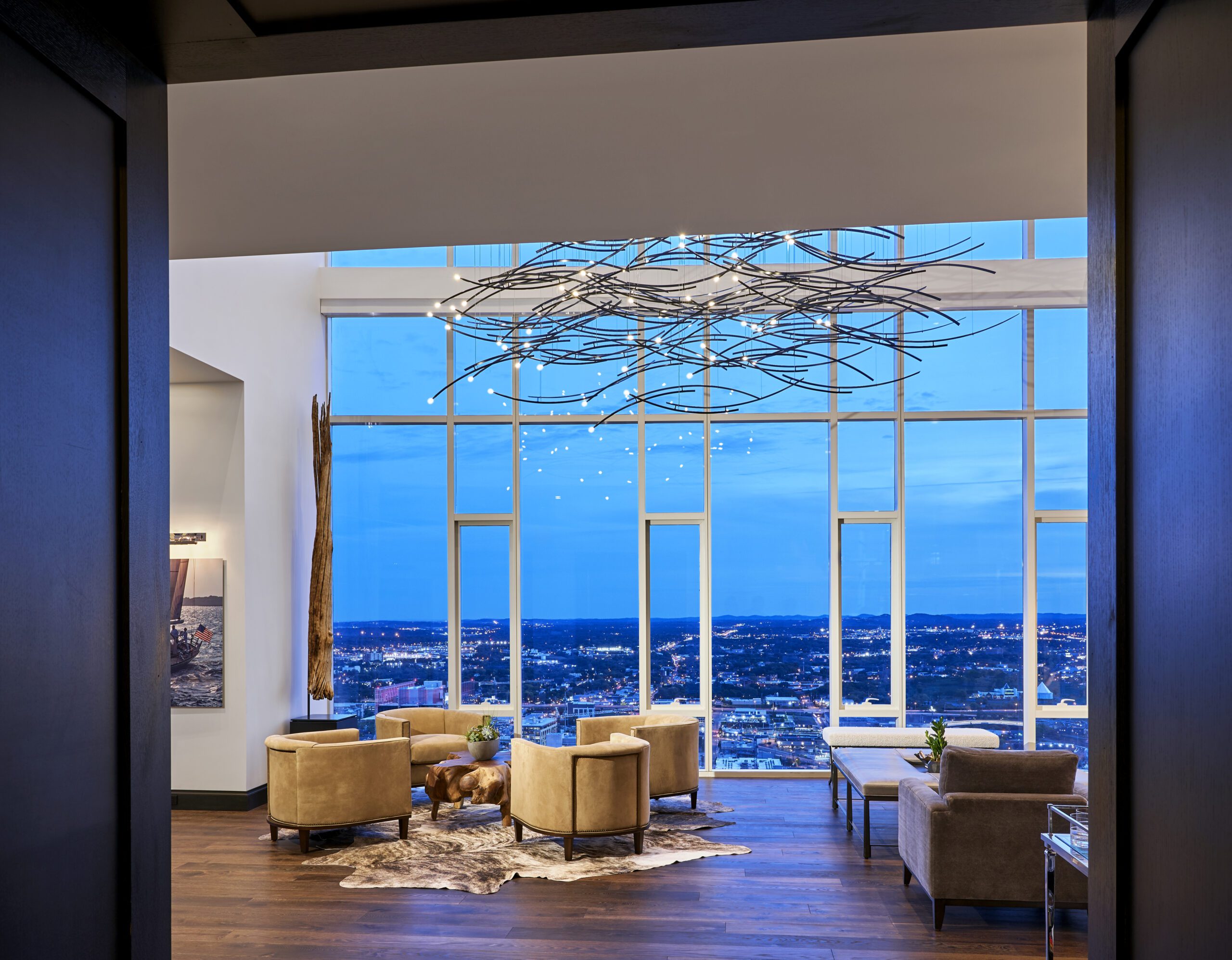 “I think it needs to be experienced to really be appreciated,” Ponterio says of the final space, which is a balance of minimalistic masculine with a comfortable, grounded sensibility truly befitting the highest perch in Nashville’s growing skyline – one Giarratana has had a pretty heavy hand in helping along.