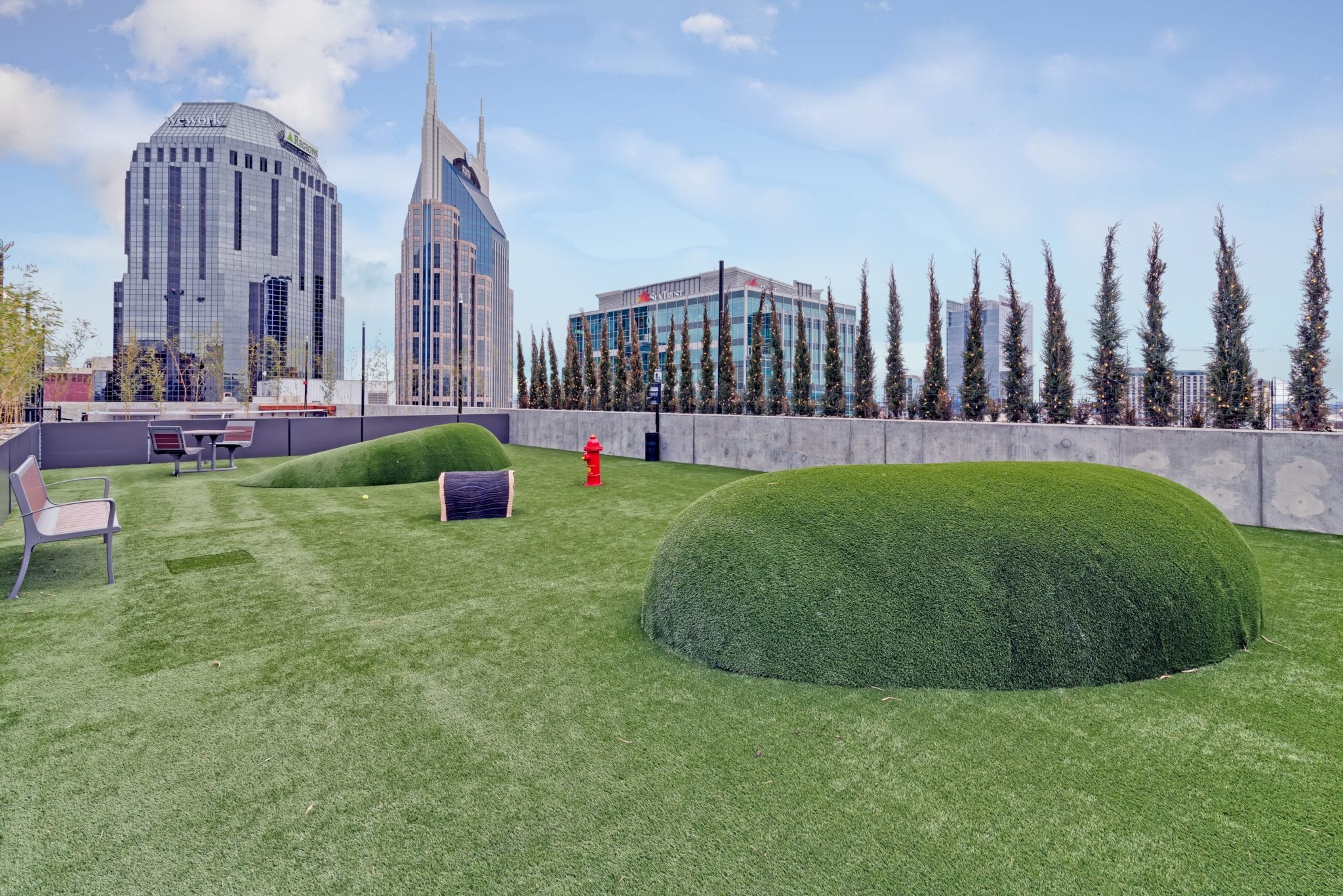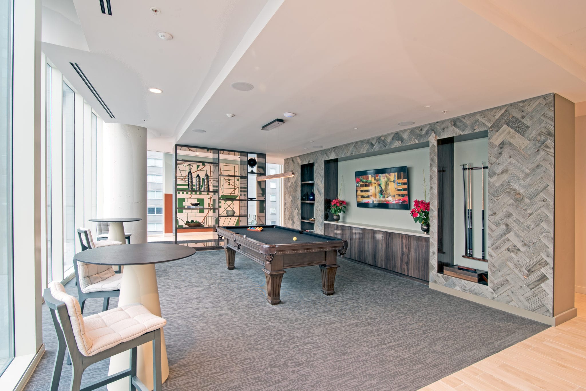 Sure it’s within walking distance to entertainment, food, retail and sports. But there is really no need to leave the building at all. With a gorgeous common space on the 7th floor, stunning pool, tennis courts, gym, dog park and entertaining spaces are all available for residents to use.