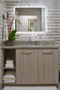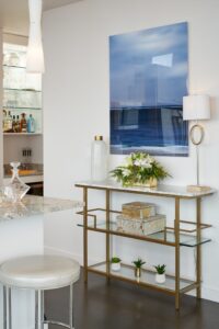 Of course there are challenges with designing a condo as opposed to a sprawling home, Szell says, but the level of appointments Nokes chose is similar for both. Szell chose an eclectic combination of patterns for the dining room, which Nokes was — at first — very much against. But she trusted Szell, and now she loves the end result.