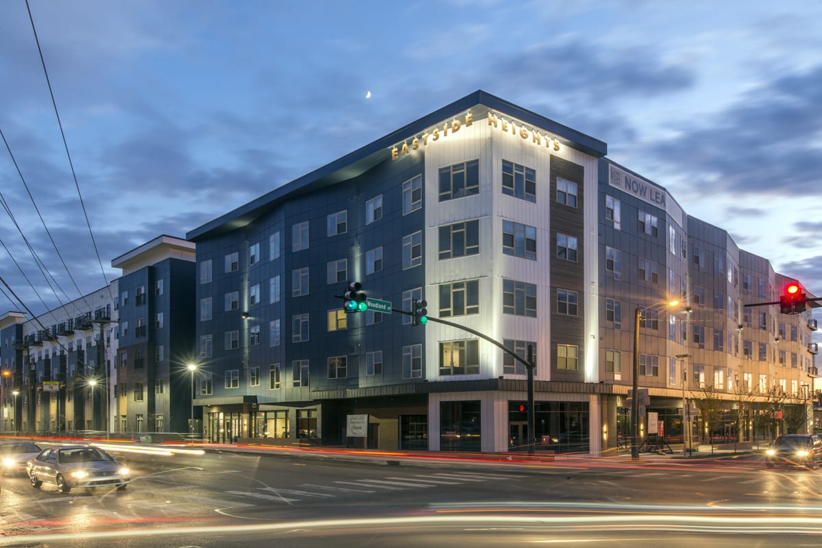 Eastside Heights is a bit of a departure from what a typical apartment project might have looked like ten years ago. The building features 249 state-of-the-art apartments and 8,000 square feet of ground floor retail space, a resort-style swimming pool with in-pool sun deck and two landscaped courtyards.