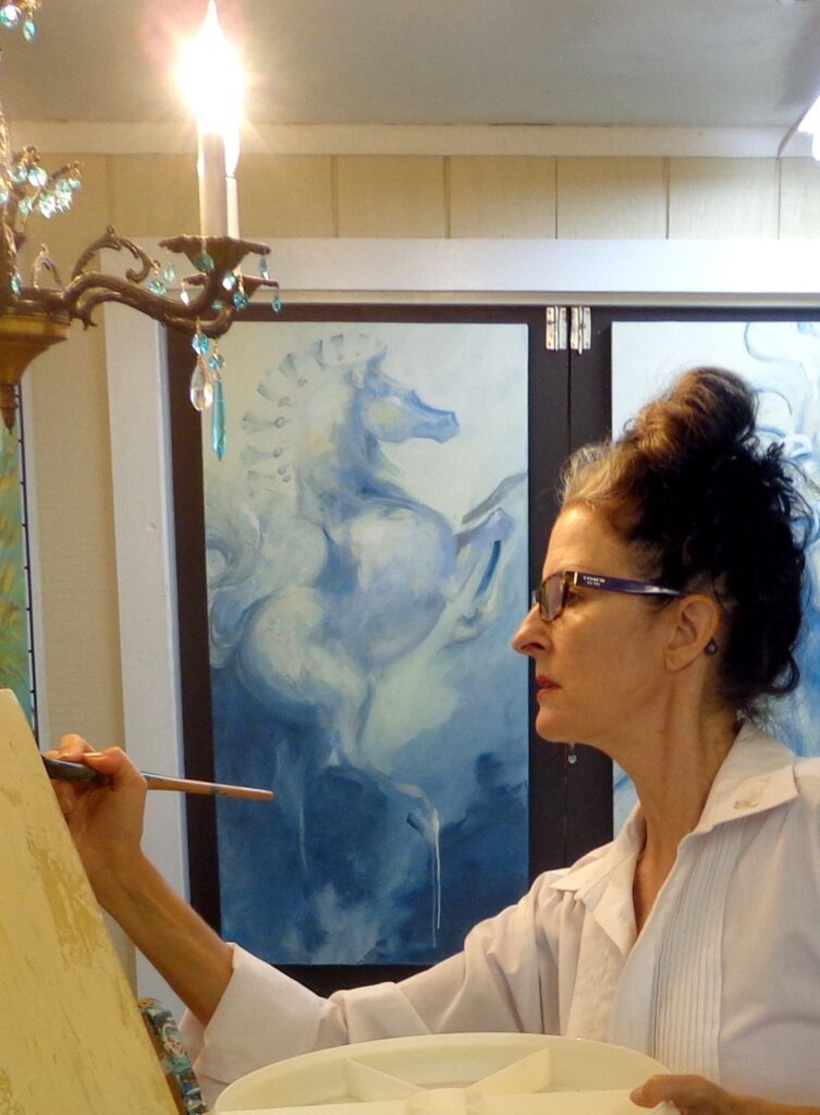Dina D’argo has always painted, at least on the side, until a severe horse-riding accident prevented her from going back to work full time. She sold her house in California and moved to Hawaii to recover. After that, she got married and moved to Tennessee. That relationship didn’t work out, but she is remarried now to her best friend and soul mate, a man she would have never met if she stayed in Hawaii.