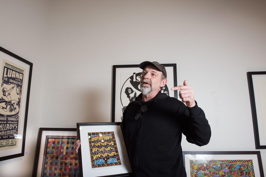 “I realized that I could start cutting my own blocks again and creating an individual piece of art based on all of the information that I received while making countless posters for everybody from Bruce Springsteen to B.B. King,” he says. “When I left the post at Hatch as manager and started working upstairs in archives, I continued creating my own pieces of art.”