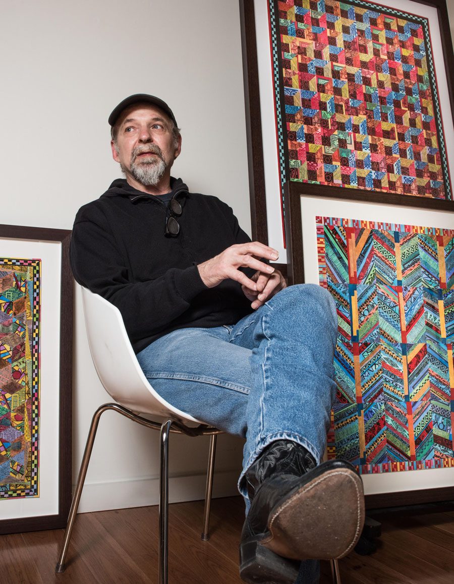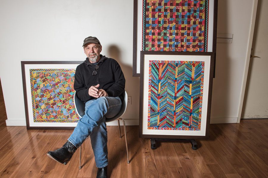 “I have what I call the ‘under-the-bed’ collection, and maybe one day we will show those,” he says. “For the time being I appreciate the printmakers before me and all those quilters who gave me the opportunity to slow down and create these pieces of art. And I’ve just gotten started.”