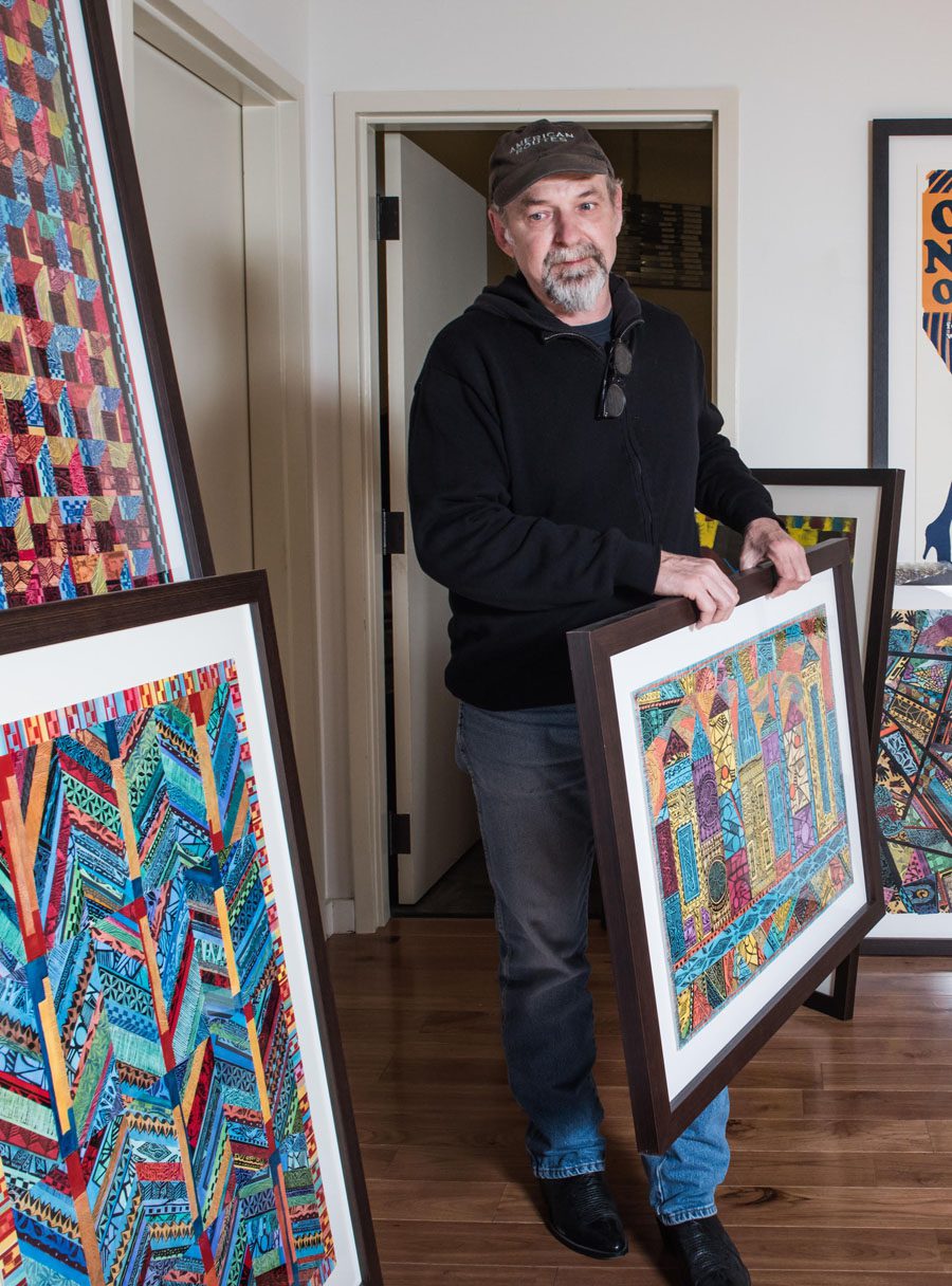 “Everything that I did at Hatch as a printmaker led me to this,” he says. “When you cut up posters for 30 years, it’s not a stretch to cut your own artwork up — keeping in mind the larger picture.”