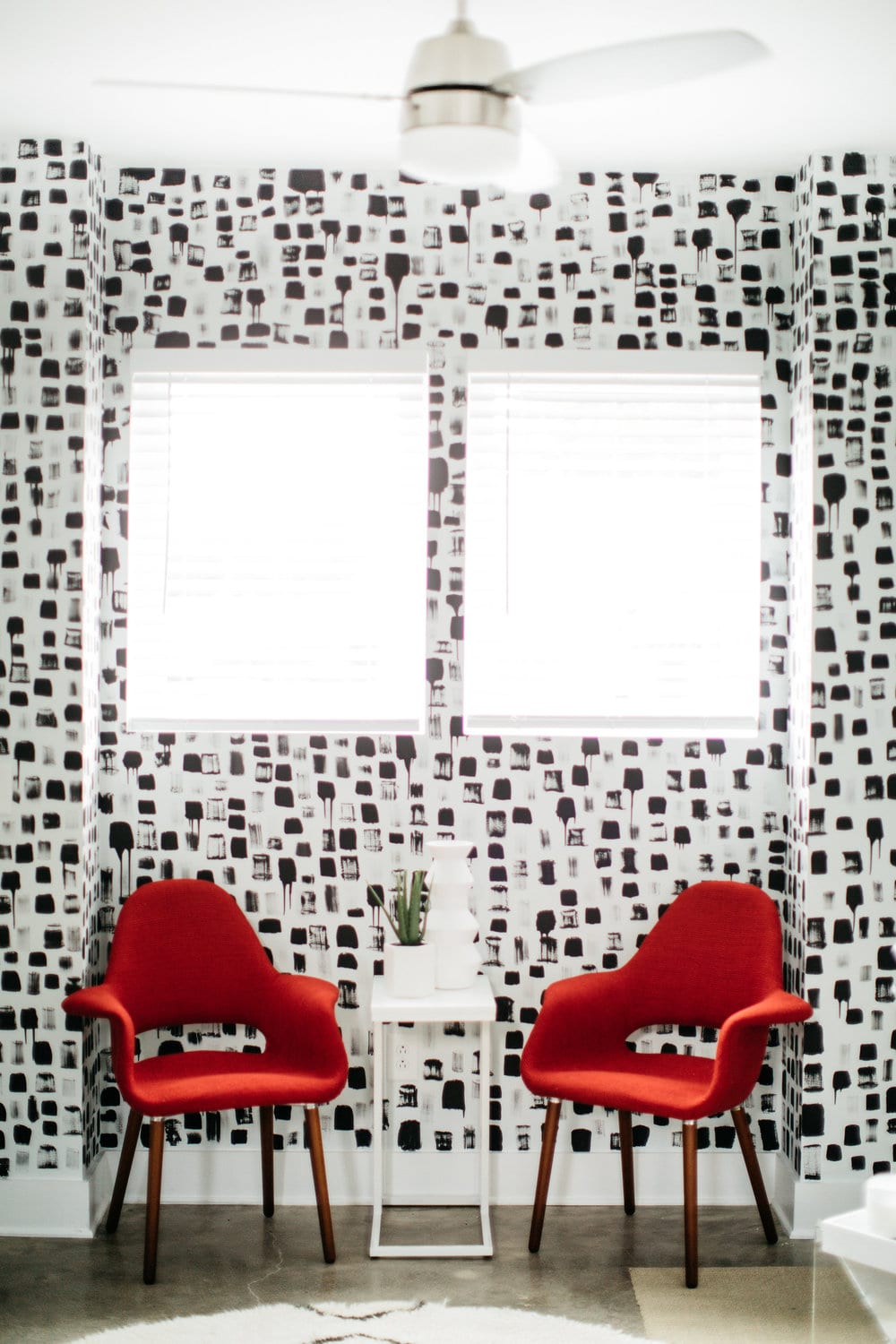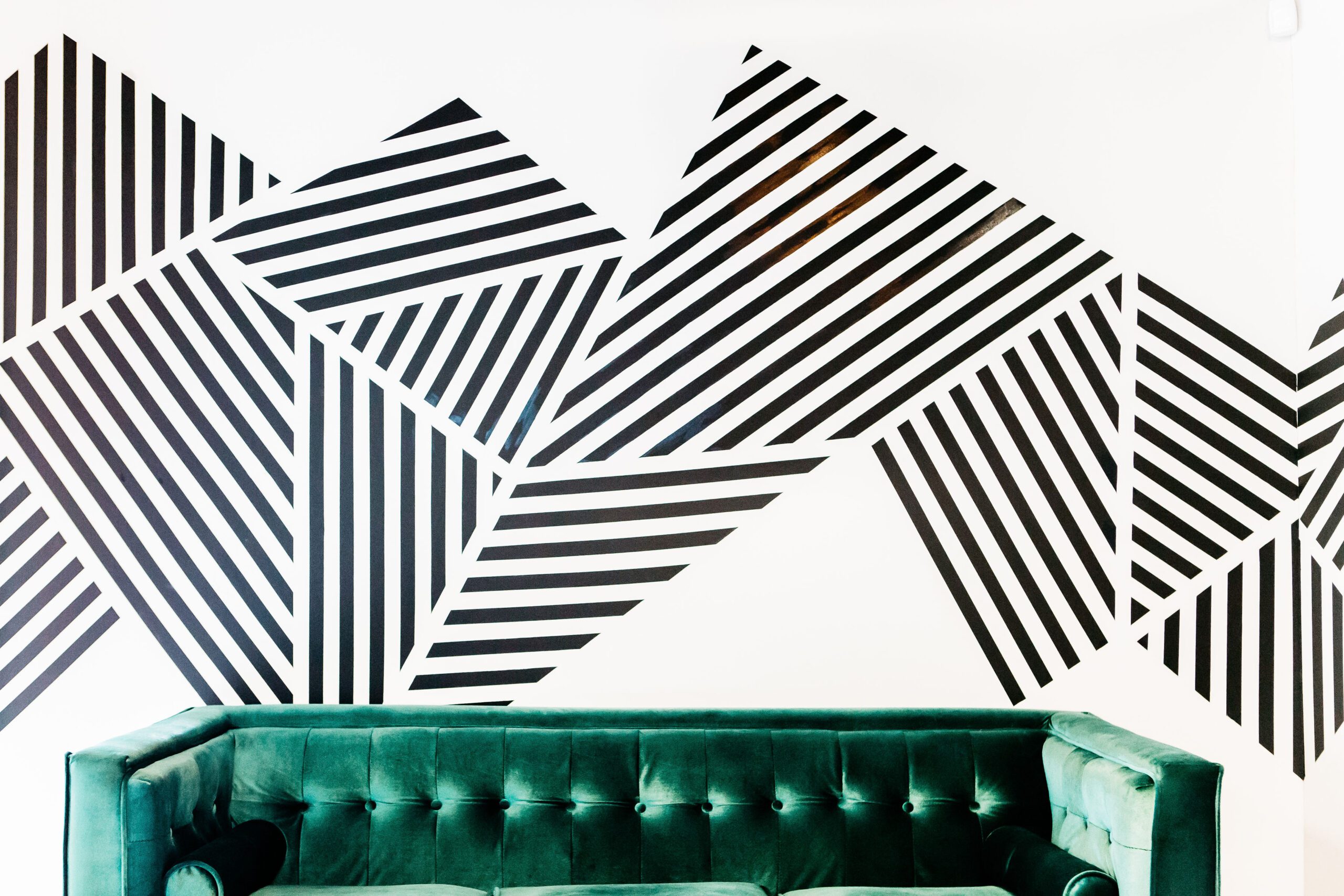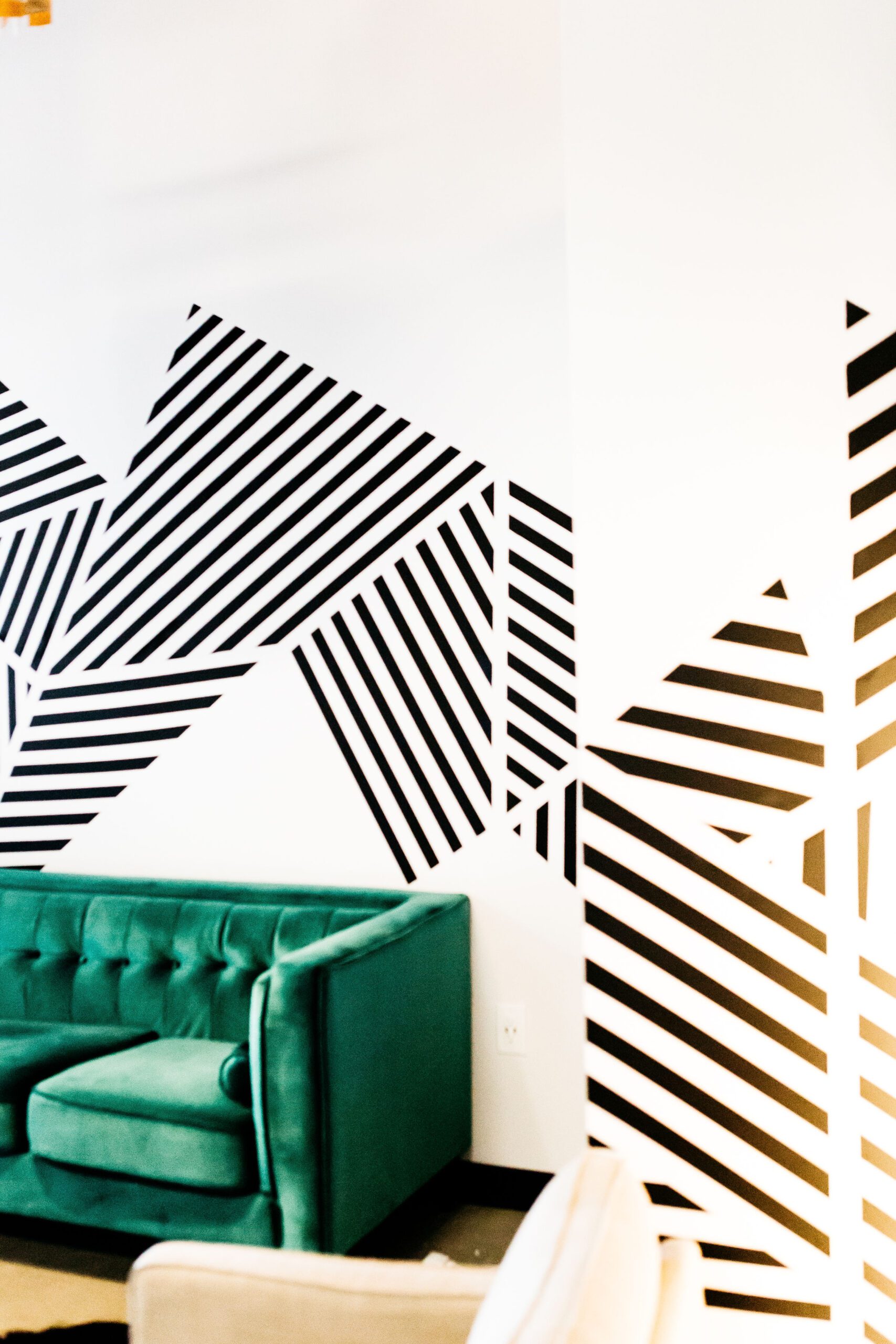 Sanger says that through West Elm she met a lot of mid-century modern design fans who really loved white walls, so it has been fun getting creative with their spaces — making accent walls with a graphic punch. The concept can be nerve-wracking for people to commit to, even though it can easily be painted over.