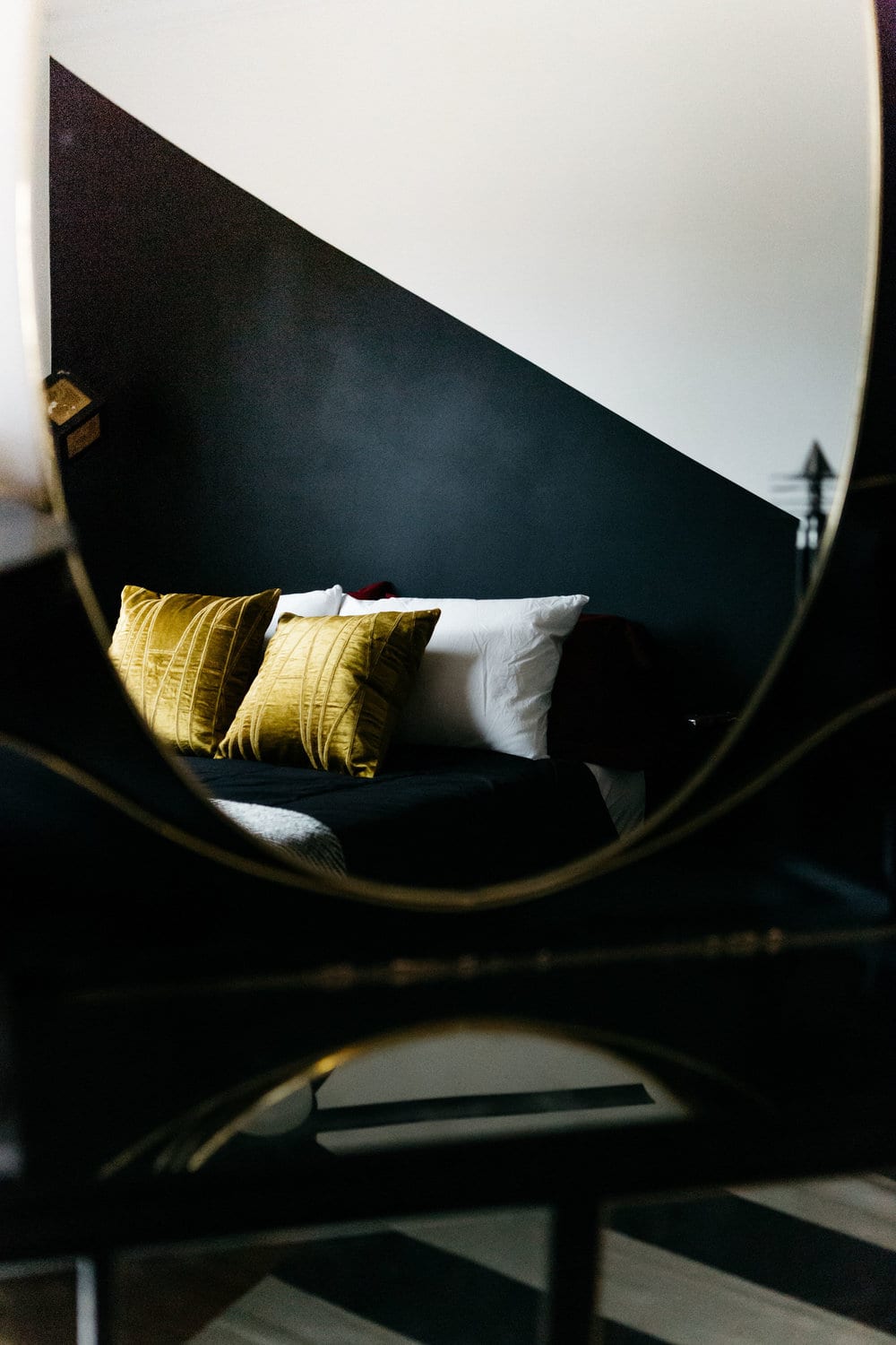 “I like to challenge conventional approaches to wall painting,” Sanger says. “Often we think of paint as being used only on walls. And typically we think about a color that will pair well with a white matte ceiling and white trim. But I like to think about how else wall paint can be used — like what if the walls were left white and only the doors and trims were painted? I love creative uses of space that are outside the norm.”