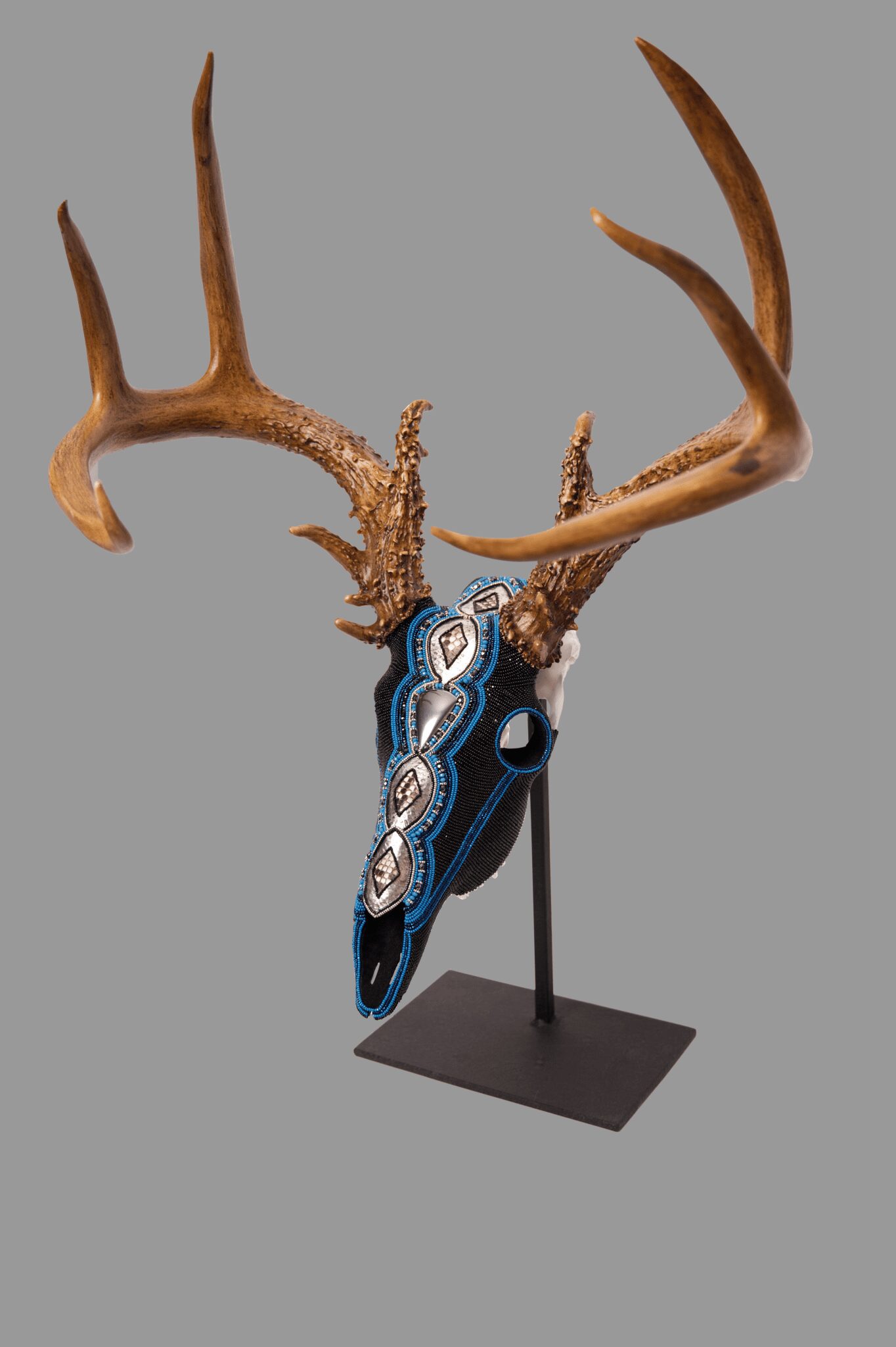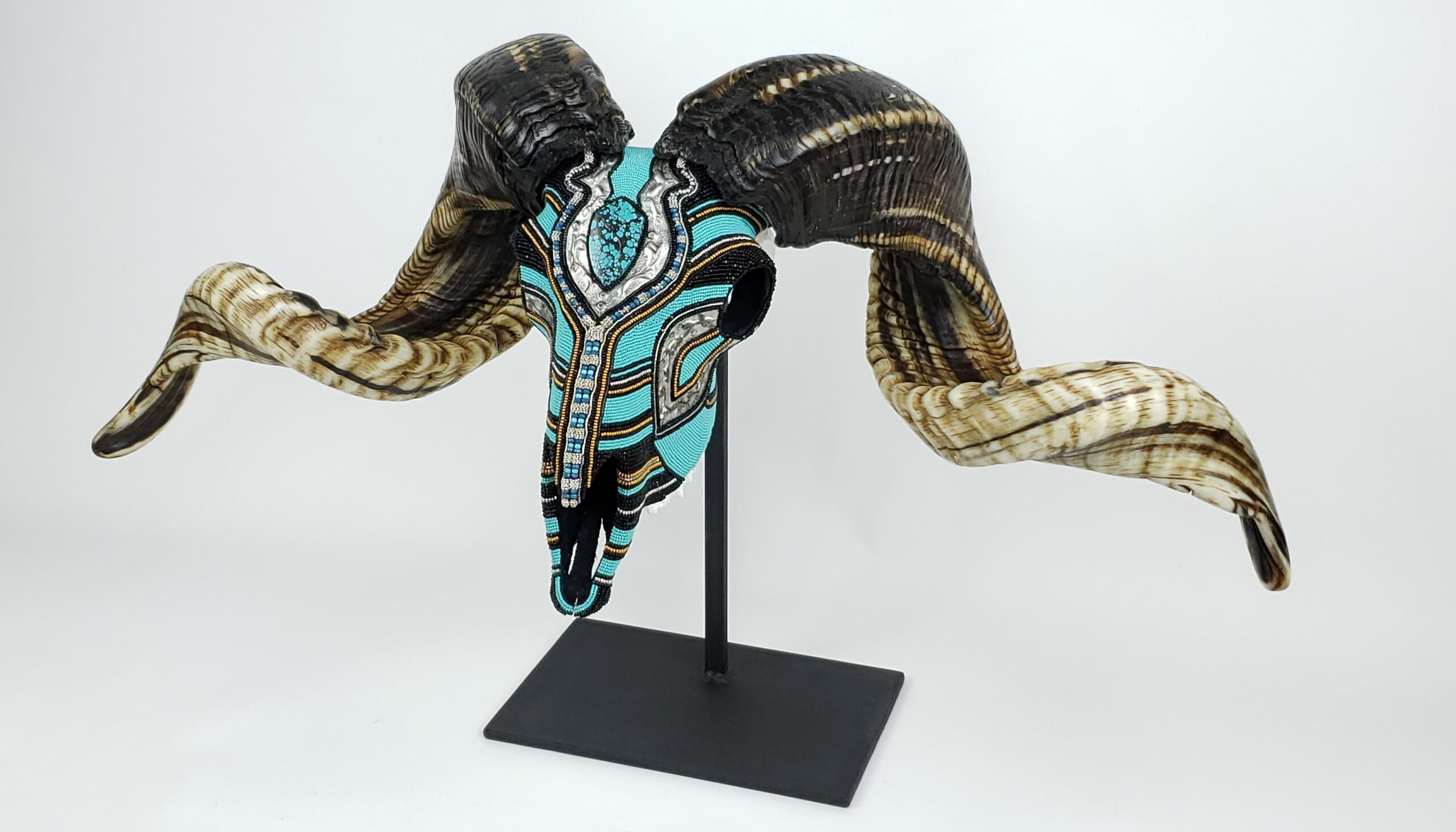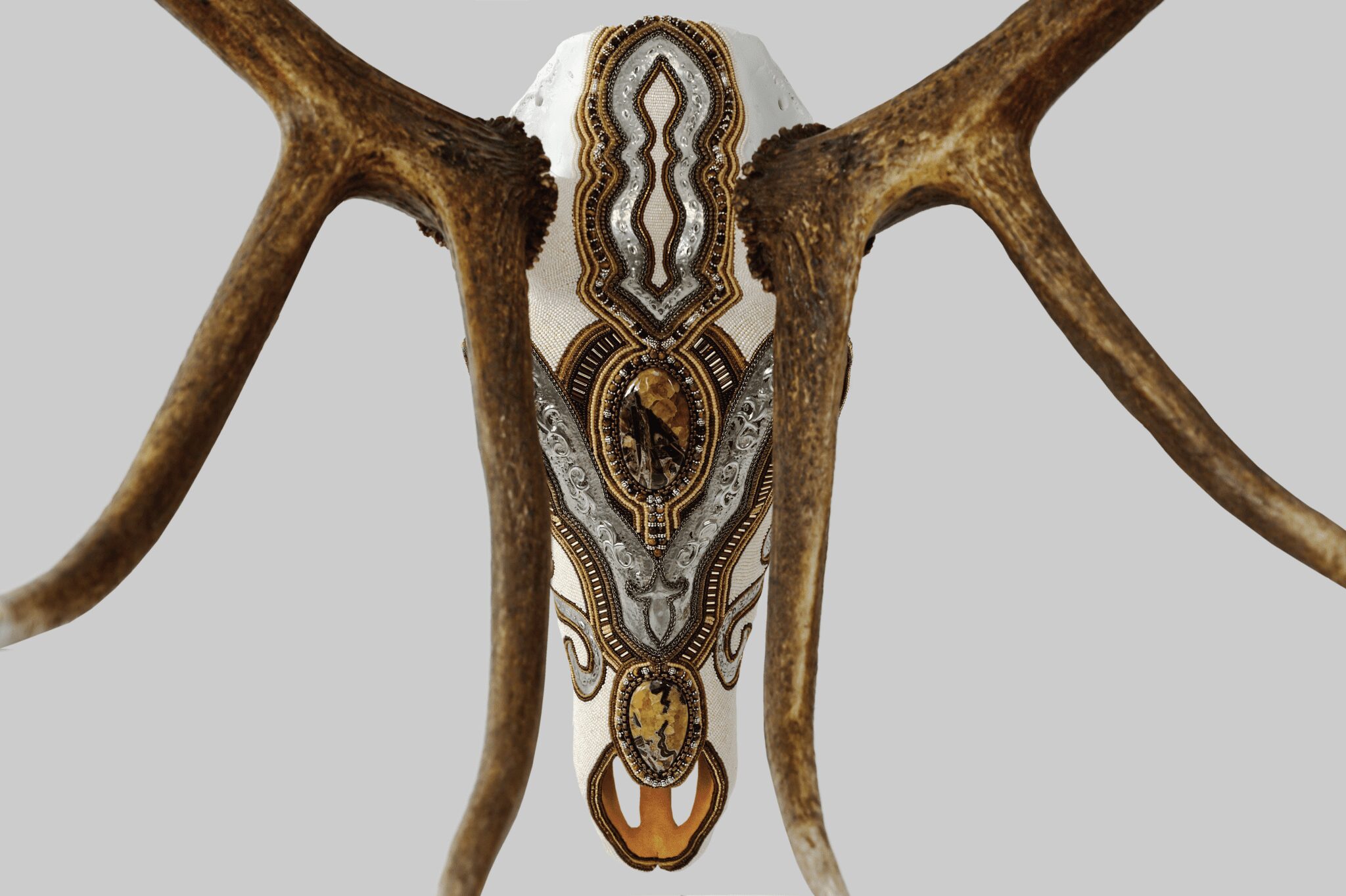 “I was looking at Western art, especially when I was out in Arizona and Wyoming, and I would see a lot of people create on animal skulls. I’m a huge animal lover and wanted to do it ethically, so I found the means and started experimenting with beads and materials, like silver, pewter and copper.”