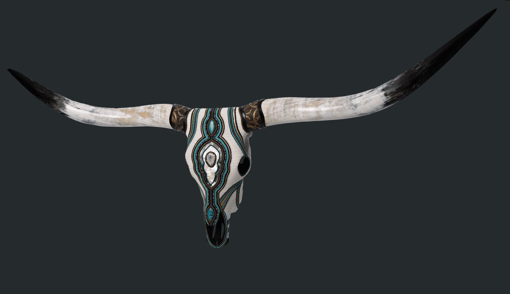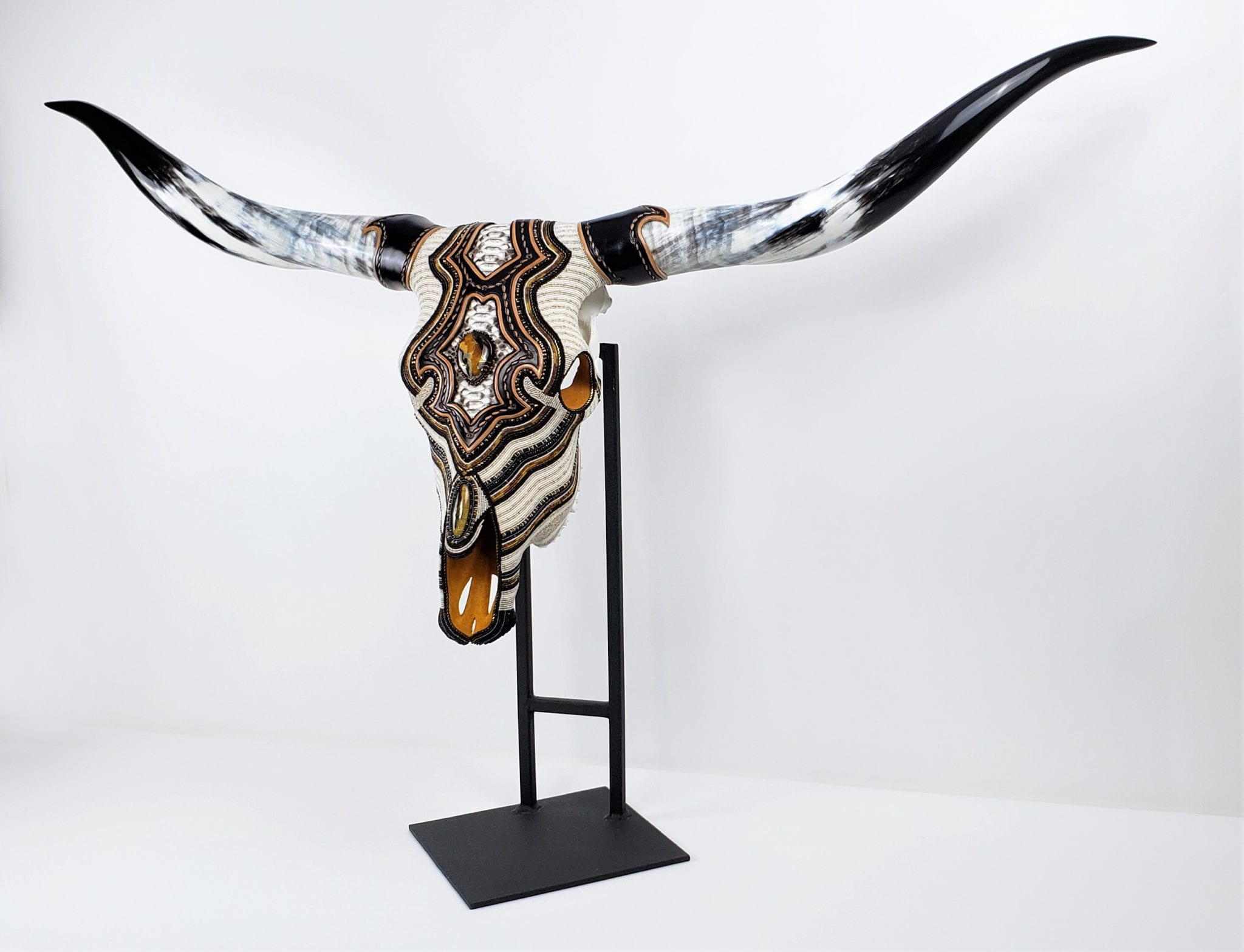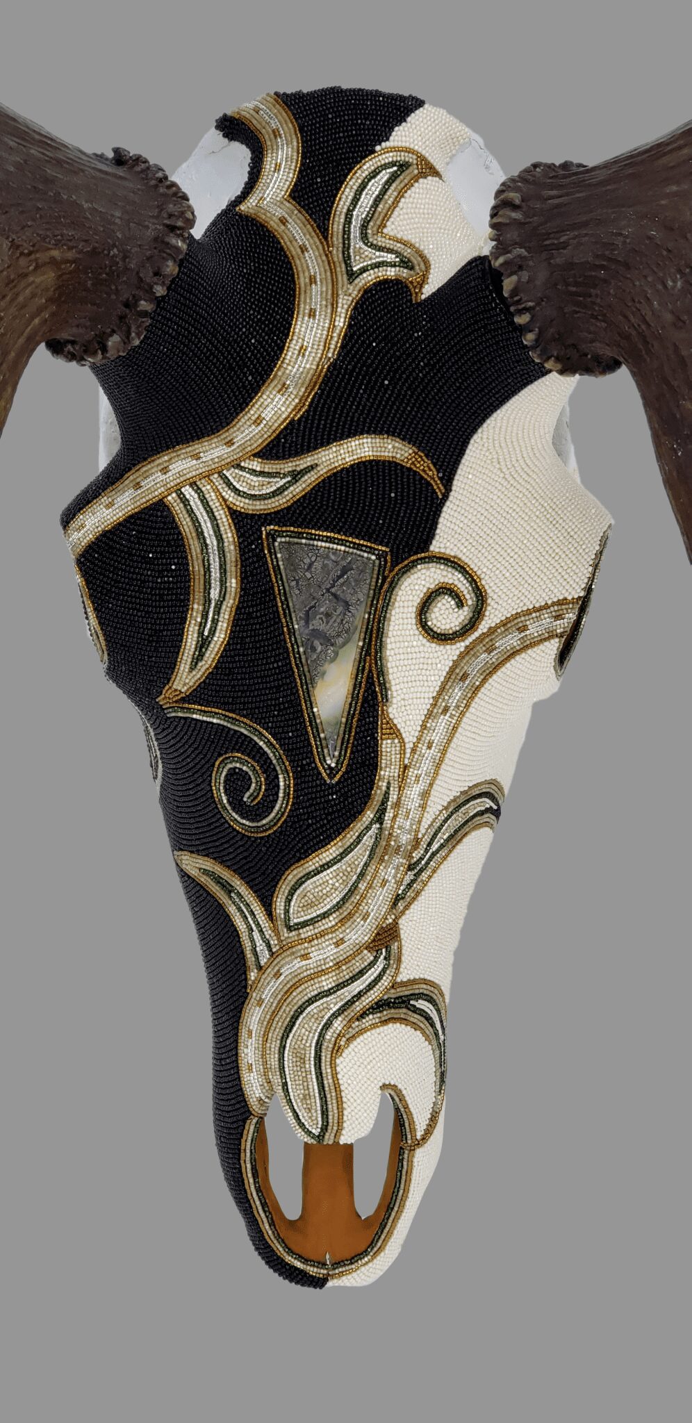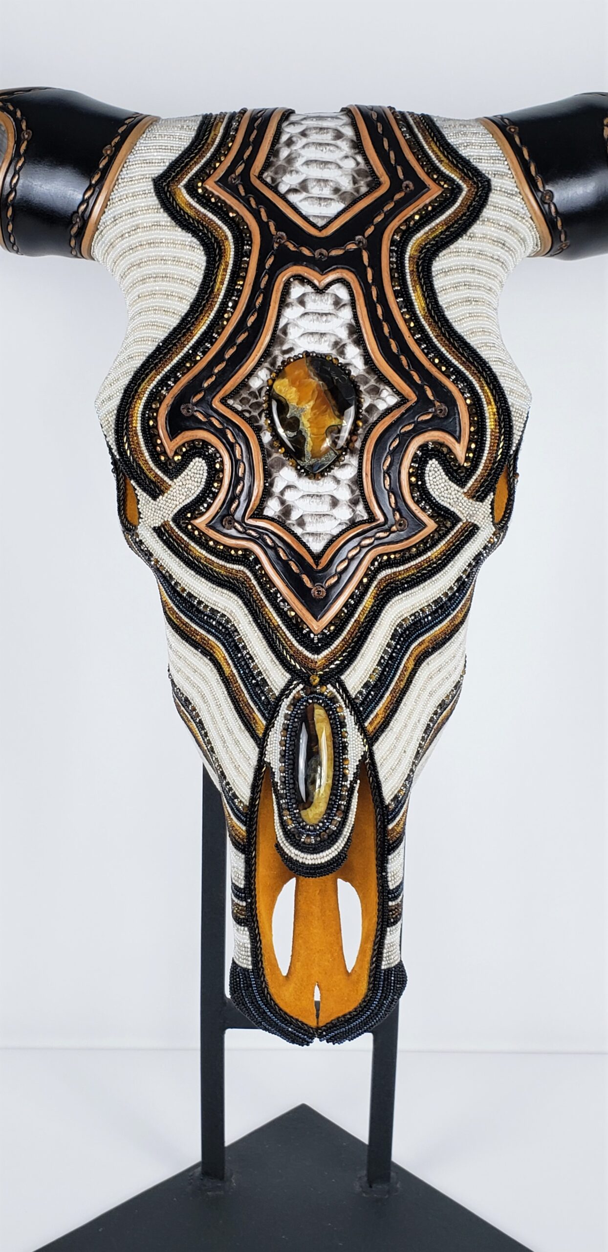 “I was looking at Western art, especially when I was out in Arizona and Wyoming, and I would see a lot of people create on animal skulls. I’m a huge animal lover and wanted to do it ethically, so I found the means and started experimenting with beads and materials, like silver, pewter and copper.”
