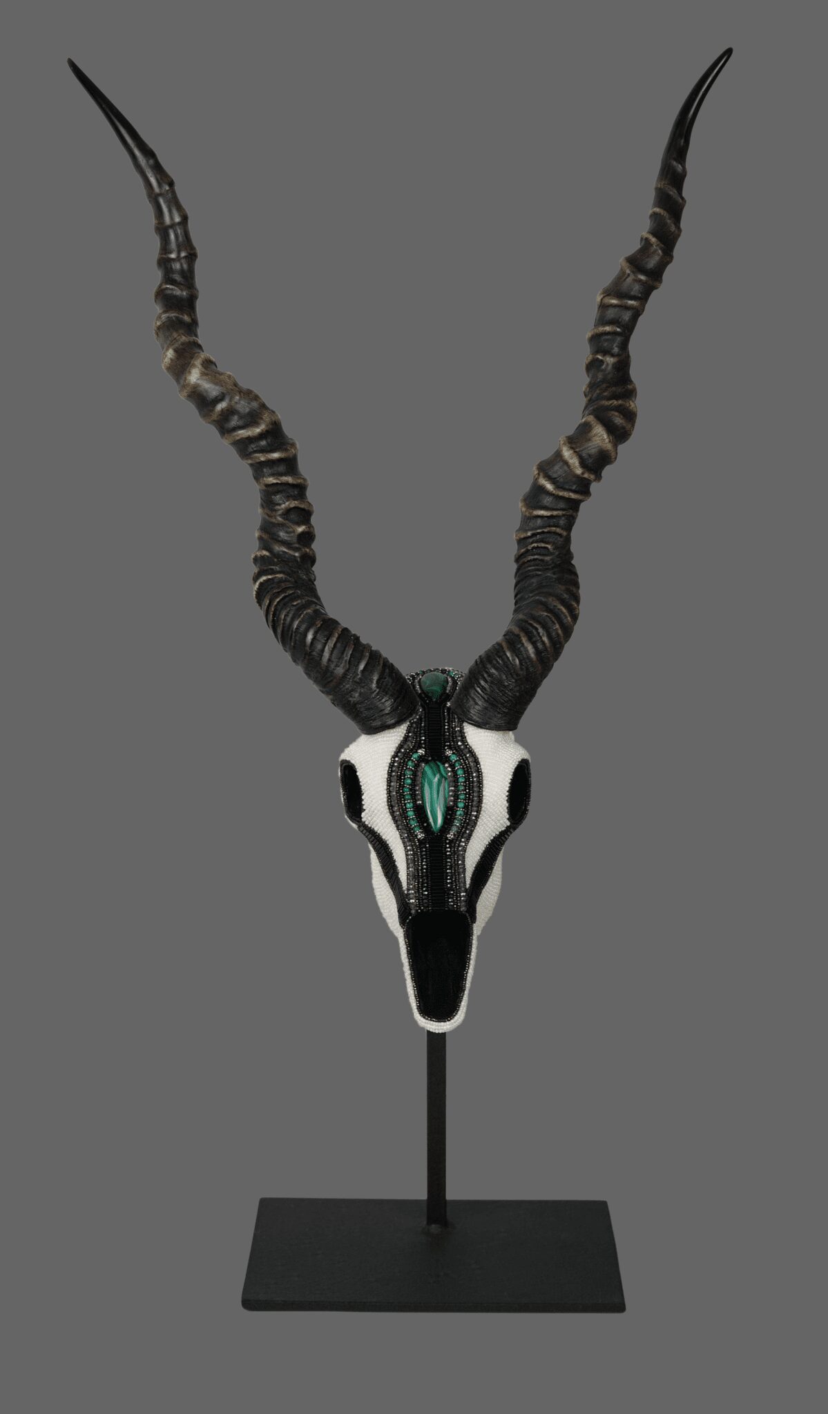 Building on skulls of the world’s most beautiful animals, D’Souza combines color and dimension to create one-of-a-kind pieces. She says she is inspired by the seemingly random perfection of nature, as she imagines the spirit of the animal and brings it new life through color, motion and depth.