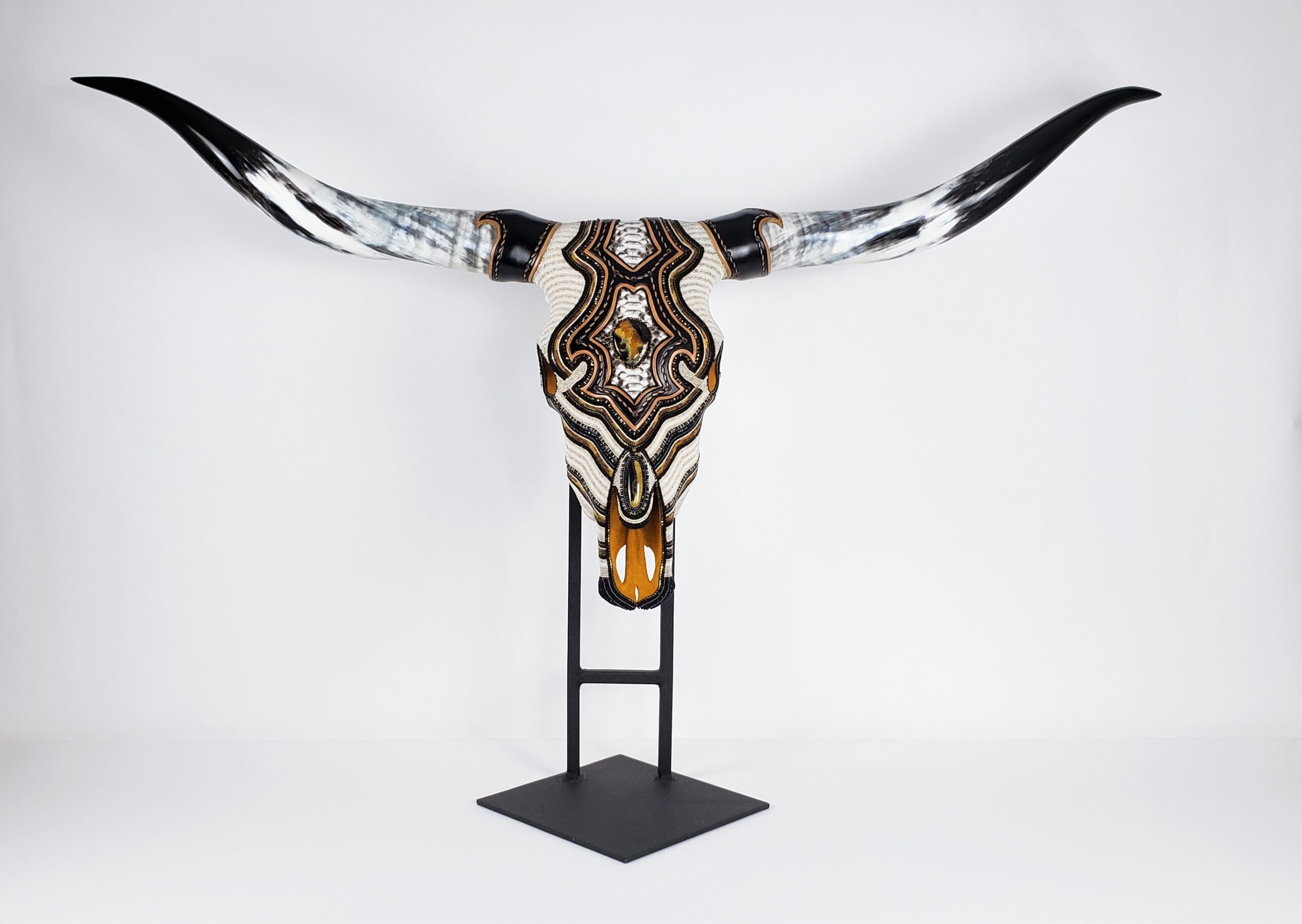 Honoring the life of the animal is at the core of D’Souza’s art. Mounts from domesticated Longhorns and bison come from small family farms, animal sanctuaries and parks after they have lived out their lives, often cared for as pets. She does not source from factory farms or meat-processing facilities.