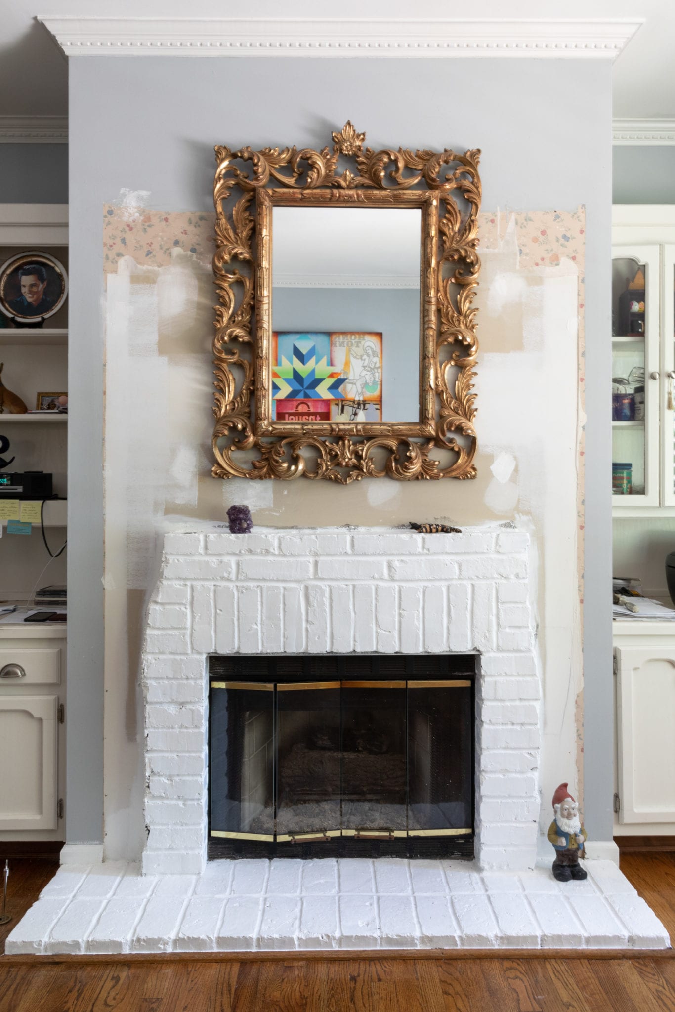 Upstairs, outside the room where Hobley does his watercolors, a fiberglass bunny that once graced an old miniature golf course holds court in the hallway. A Jonathan Adler lamp featuring a repeat breast pattern sits on a table next to a couch that looks straight out of the ’60s. It’s all a dash of Liberace with a little bit of Scarface simmering with Dolly Parton and Elvis undertones.
