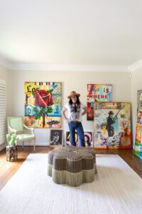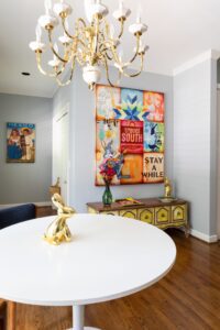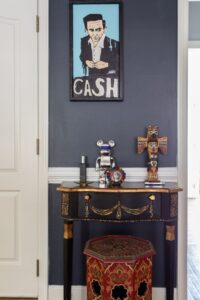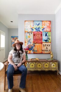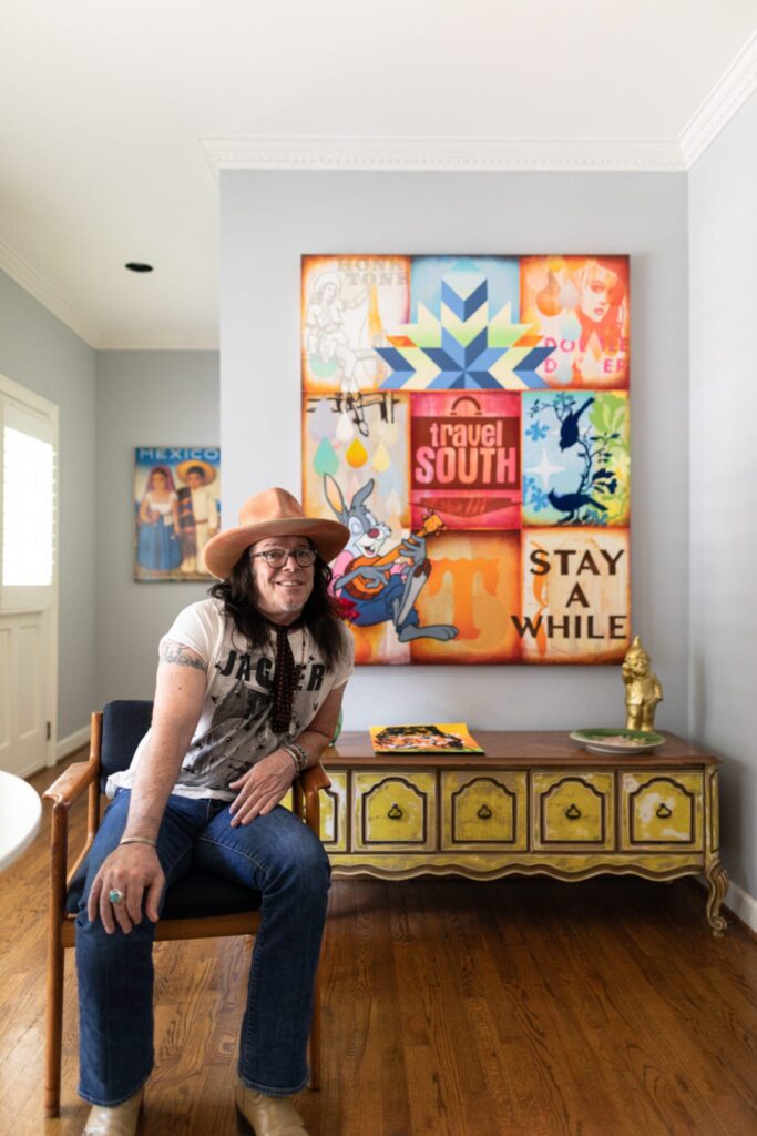 Almost every room in his home has a record player, and pieces from Southeastern Salvage mix with Home Goods. The cowhide table he bought from some Navajo Indians back in the ’80s and has been the one thing he has dragged with him place to place. And of course, art is everywhere.