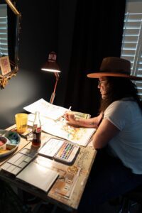 Though he has been creative since day one, art wasn’t exactly encouraged by his Arizona sheriff father in their Mormon household. But that household ended up being the perfect breeding ground for a mostly self-taught rebel artist, the oldest of six kids whose teachers submitted his art to contests – which he kept winning. And he found validation and encouragement from outside his home, as people kept buying his watercolors.