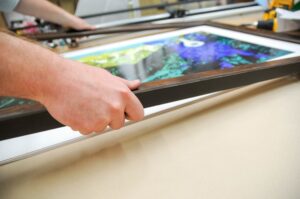 Have you ever been sitting at Jason Aldean or Luke Bryan’s restaurants in downtown Nashville and noticed the photos on the wall? Those were all framed by Belle Meade Framers. Have you seen an impressive photo gallery wall in a Nashville luxury home? Chances are, they were framed at The Beveled Edge. Just recently, Belle Meade Framers and The Beveled Edge have combined into one condensed custom picture frame shop on White Bridge Road. Some big renovations and changes are in the works, but ultimately Belle Meade Framers and The Beveled Edge will continue to be doing what they’ve done best for the last 45 years and 36 years respectively.