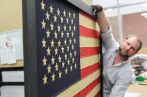 Evin began working at the Belle Meade Framers when he was 12, took a break to get his degree and pursue other work, but came back to the business in 2014. He works side-by-side with his mother every day while his father and sister work at the warehouse. They may squabble from time to time, but he couldn’t imagine not working with his parents. He expressed how excited his family is about this collaboration.