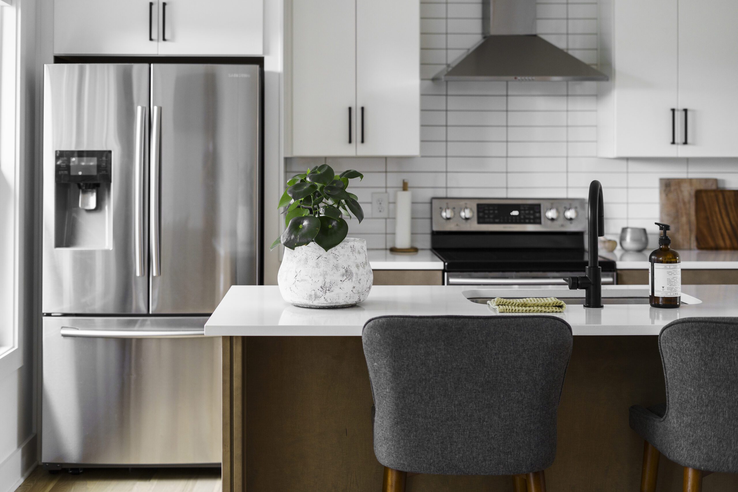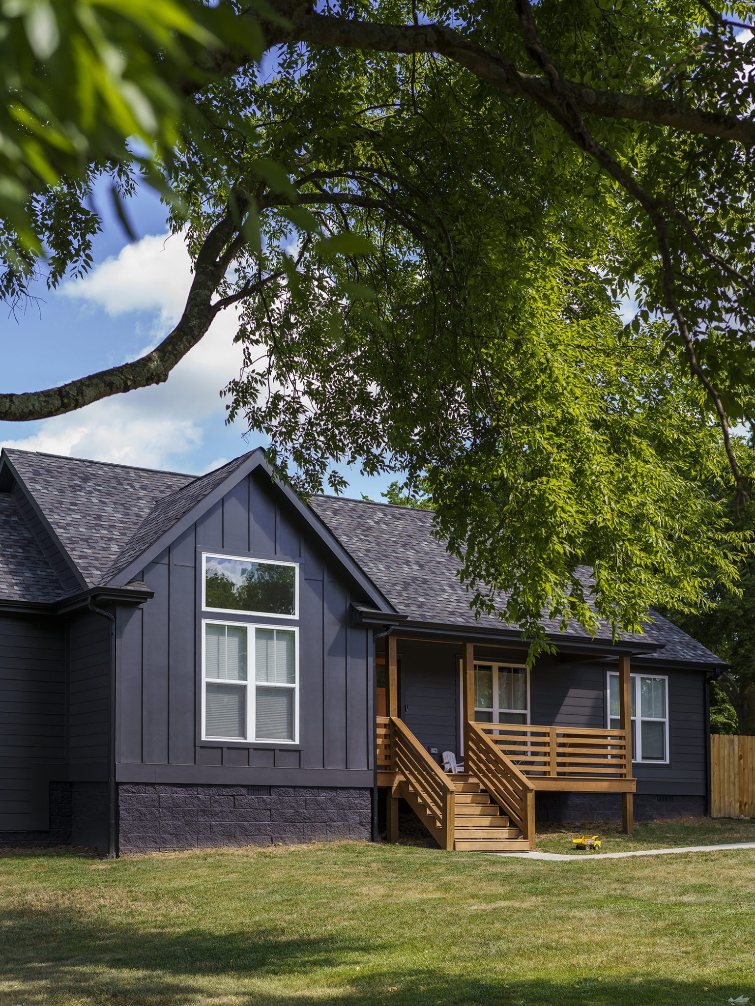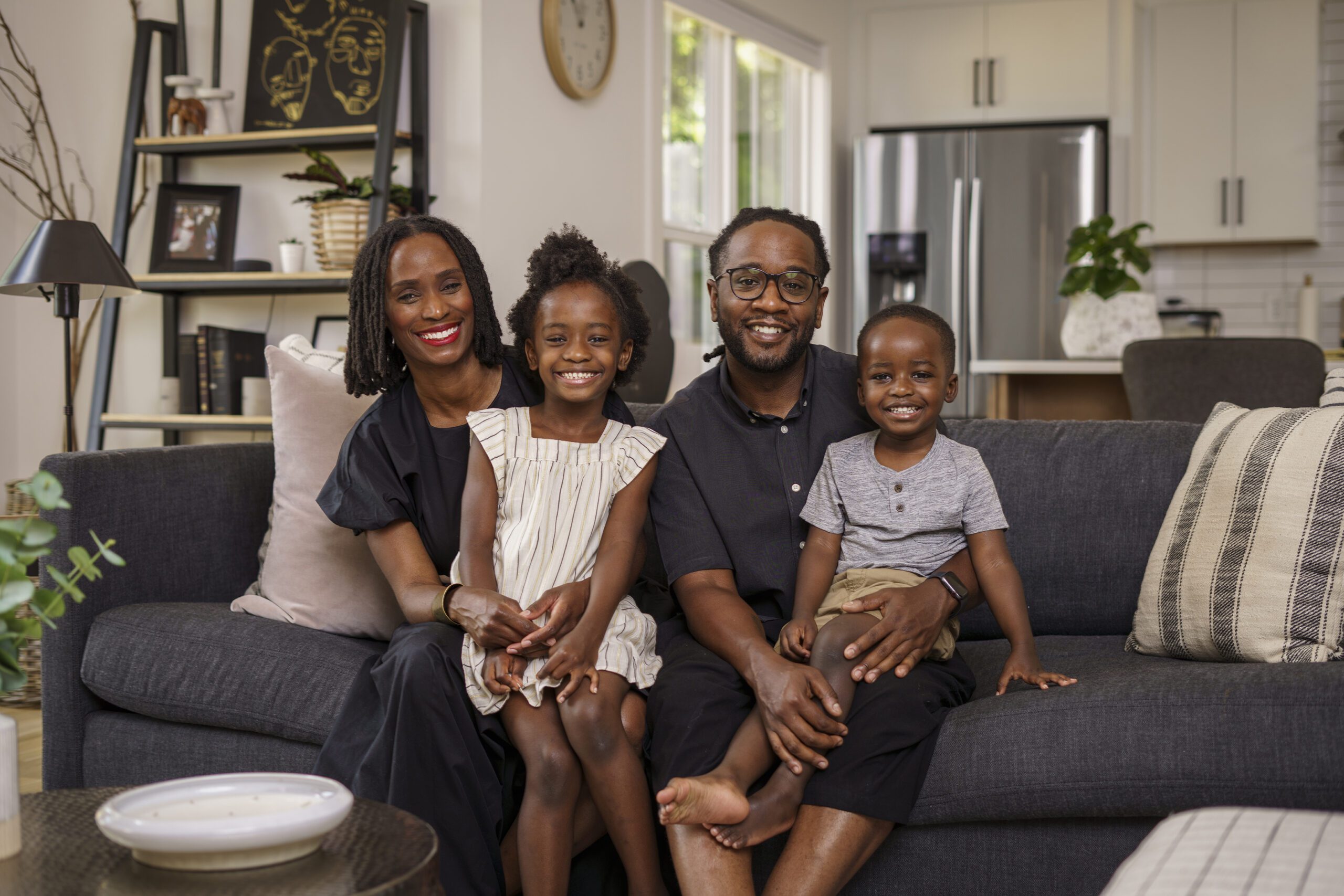 They beat out other cash offers, relying heavily on her expertise in going through the Board of Zoning Appeals process to build on the land. Neighbors came out to the meetings and offered opinions on what not to build, which the Capeharts took in stride, explaining their plans and a shared desire to honor the architectural context of the neighborhood. They purchased site plans online and made small tweaks to customize them for their lives, including mirroring the dining room and kitchen so the kitchen opened to the living room, and enclosing a front sitting room to turn into an office. At the same time, Capehart was working on a zoning change for a client in Antioch, Province Builders. The Black-owned company, which typically does larger, high-end residential projects, offered their services. The house went under construction during the pandemic, and since playgrounds were closed, the family came to the site to let the children play. “They knew this was our land.”