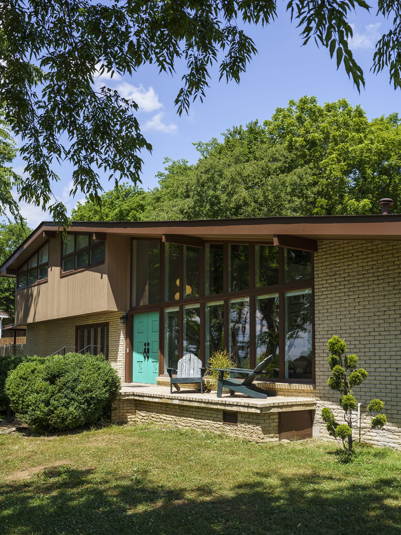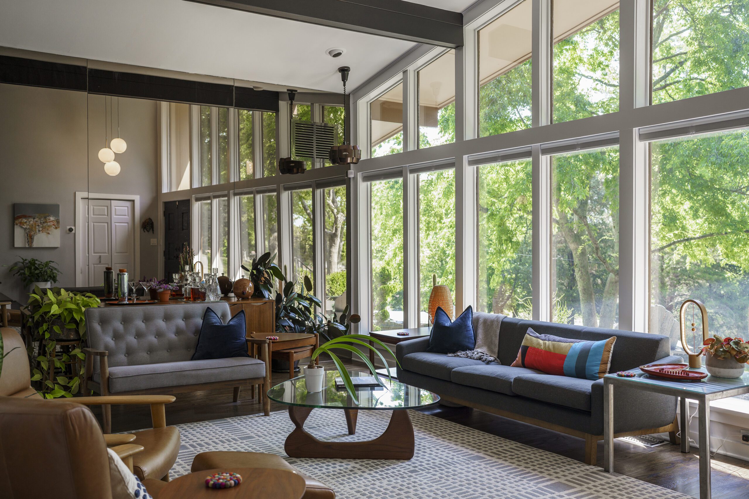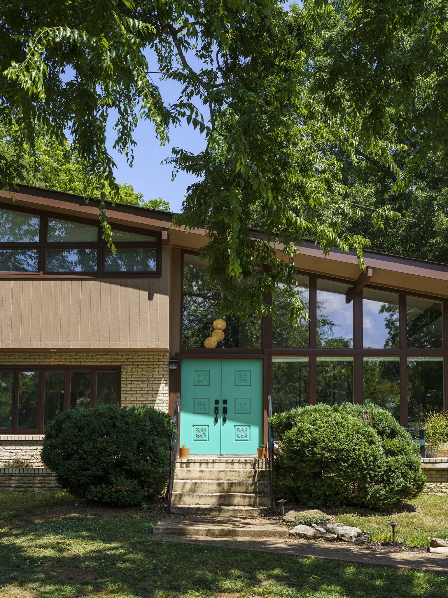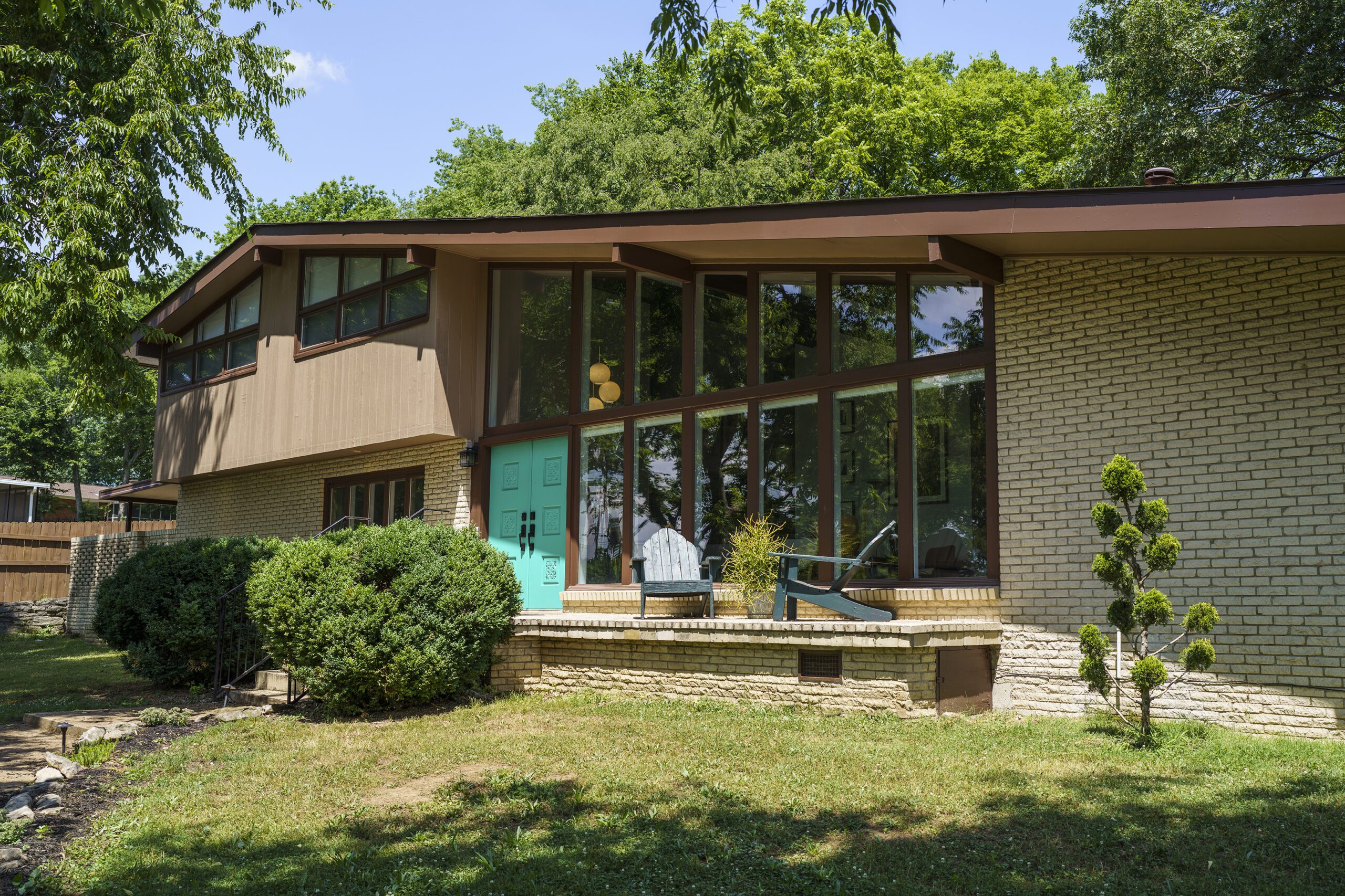 Shady tree limbs dapple the drive leading up to Bill Paine and Kristen Ware’s property. Set back from the road, the gabled roof of the 1965 mid-century split-level gem emerges from the hillside it’s built into. The front facade, mostly consisting of windows, glows from the George Nelson bubble lamp hanging inside. The lamp was a gift from Bill’s father, which is how this story gets its start. After trading in their chips on a couple homes, including a Victorian in Lockeland Springs, the couple consulted Bill’s father, David Paine, an architectural historian turned real estate agent, on landing on a home with architectural interest. They set their sights on single level ranches, loving the long and lean lines the homes are known for, with little success. Then came Capehart, who had leads on several mid-century homes in Bordeaux. Capehart brought them to the Drakes Branch property in Enchanted Hills a couple times before they put in an offer. This issue was that the current homeowner wanted a certain amount, but it had to be appraised. Capehart compiled a package of evidence that hinged on statistics about homes in historically Black neighborhoods not appraising for their true value. Her research helped close the deal—and the divide between the asking price and the bank appraisal.