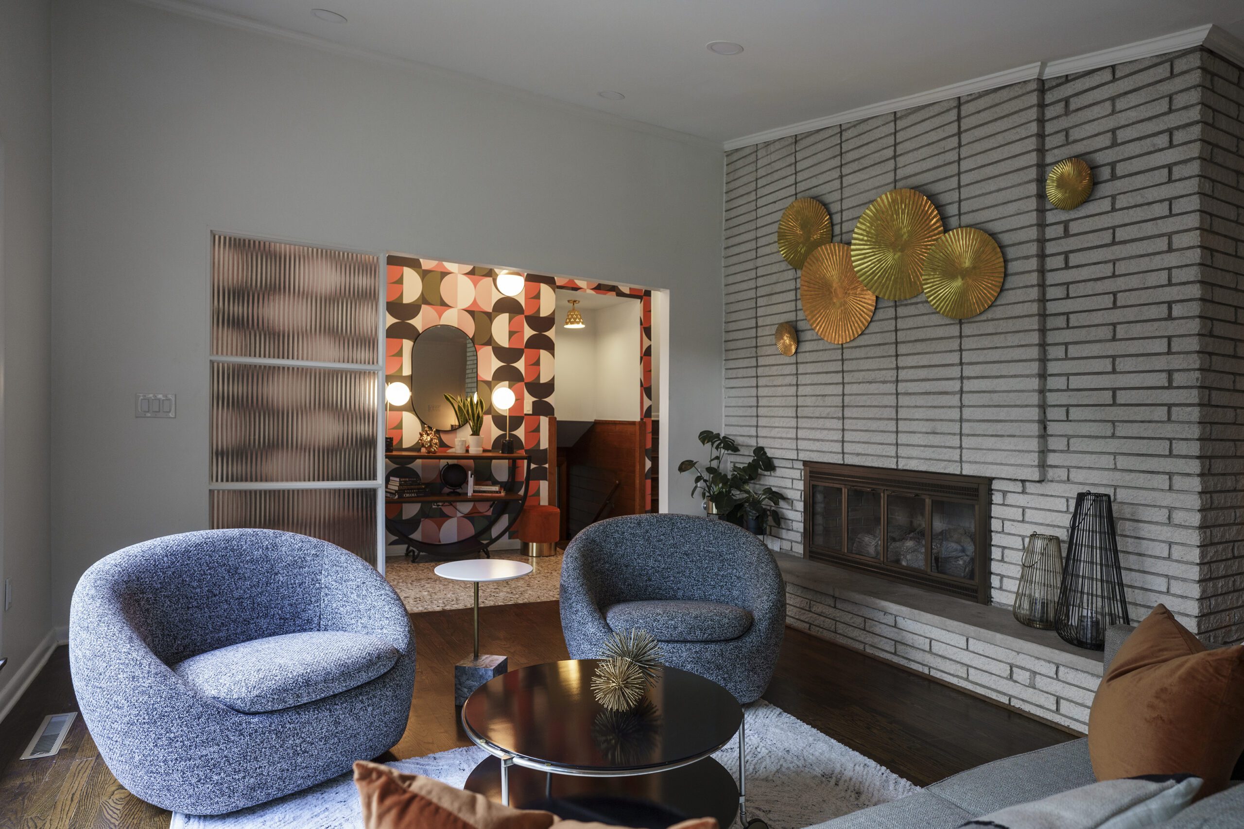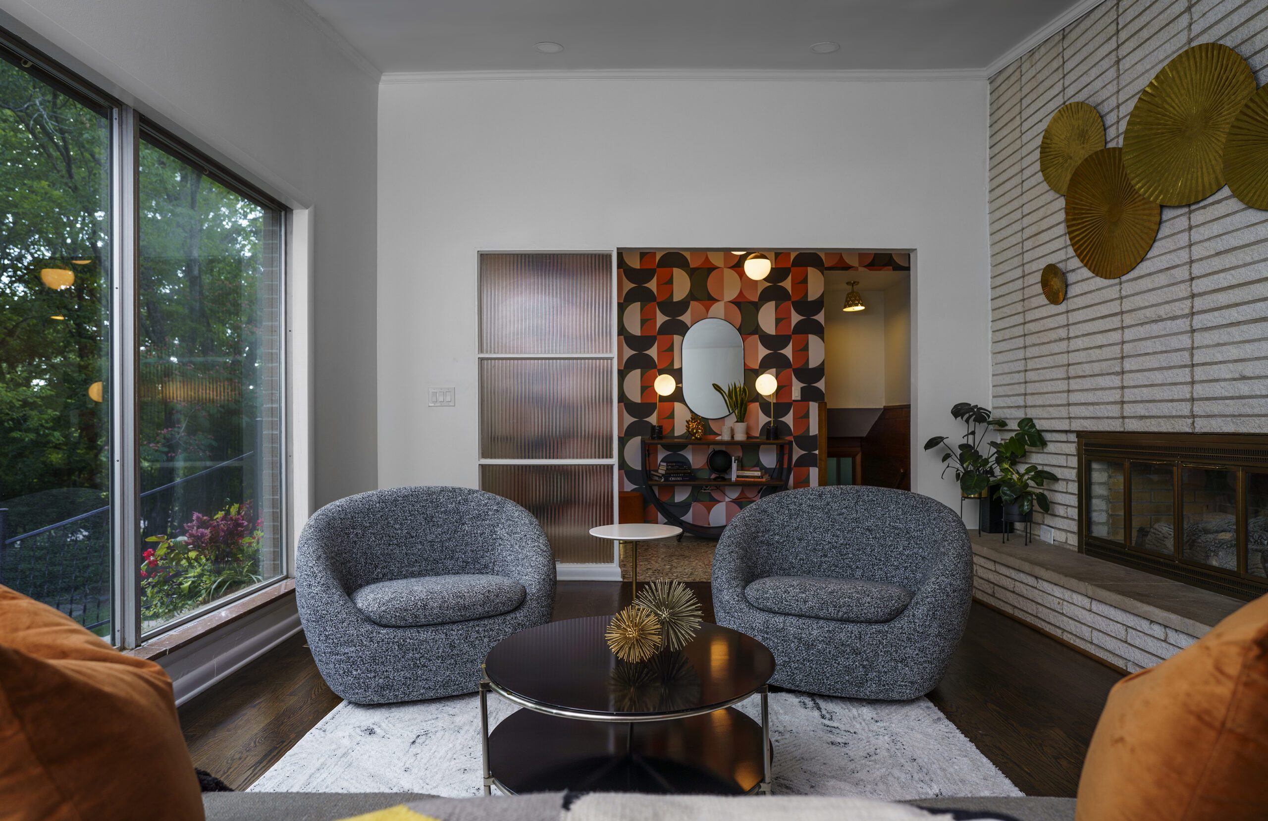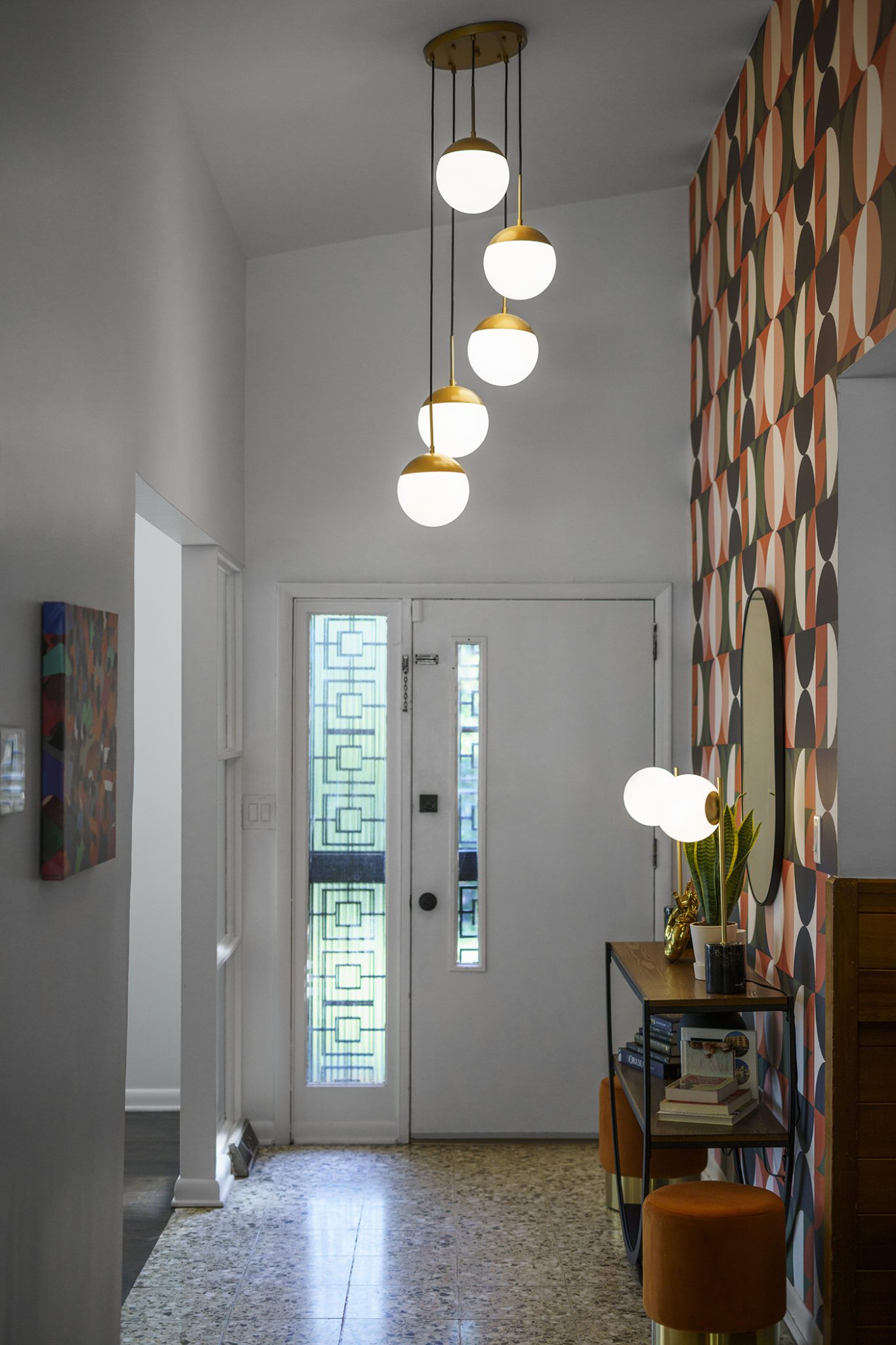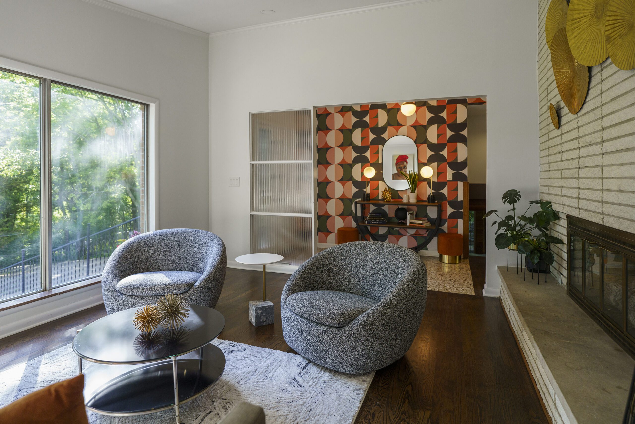Shady tree limbs dapple the drive leading up to Bill Paine and Kristen Ware’s property. Set back from the road, the gabled roof of the 1965 mid-century split-level gem emerges from the hillside it’s built into. The front facade, mostly consisting of windows, glows from the George Nelson bubble lamp hanging inside. The lamp was a gift from Bill’s father, which is how this story gets its start. After trading in their chips on a couple homes, including a Victorian in Lockeland Springs, the couple consulted Bill’s father, David Paine, an architectural historian turned real estate agent, on landing on a home with architectural interest. They set their sights on single level ranches, loving the long and lean lines the homes are known for, with little success. Then came Capehart, who had leads on several mid-century homes in Bordeaux. Capehart brought them to the Drakes Branch property in Enchanted Hills a couple times before they put in an offer. This issue was that the current homeowner wanted a certain amount, but it had to be appraised. Capehart compiled a package of evidence that hinged on statistics about homes in historically Black neighborhoods not appraising for their true value. Her research helped close the deal—and the divide between the asking price and the bank appraisal.