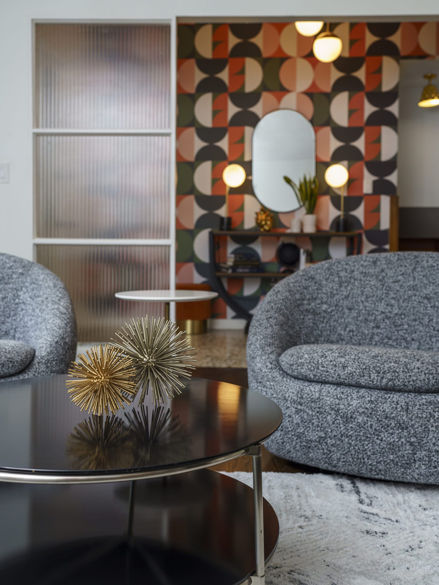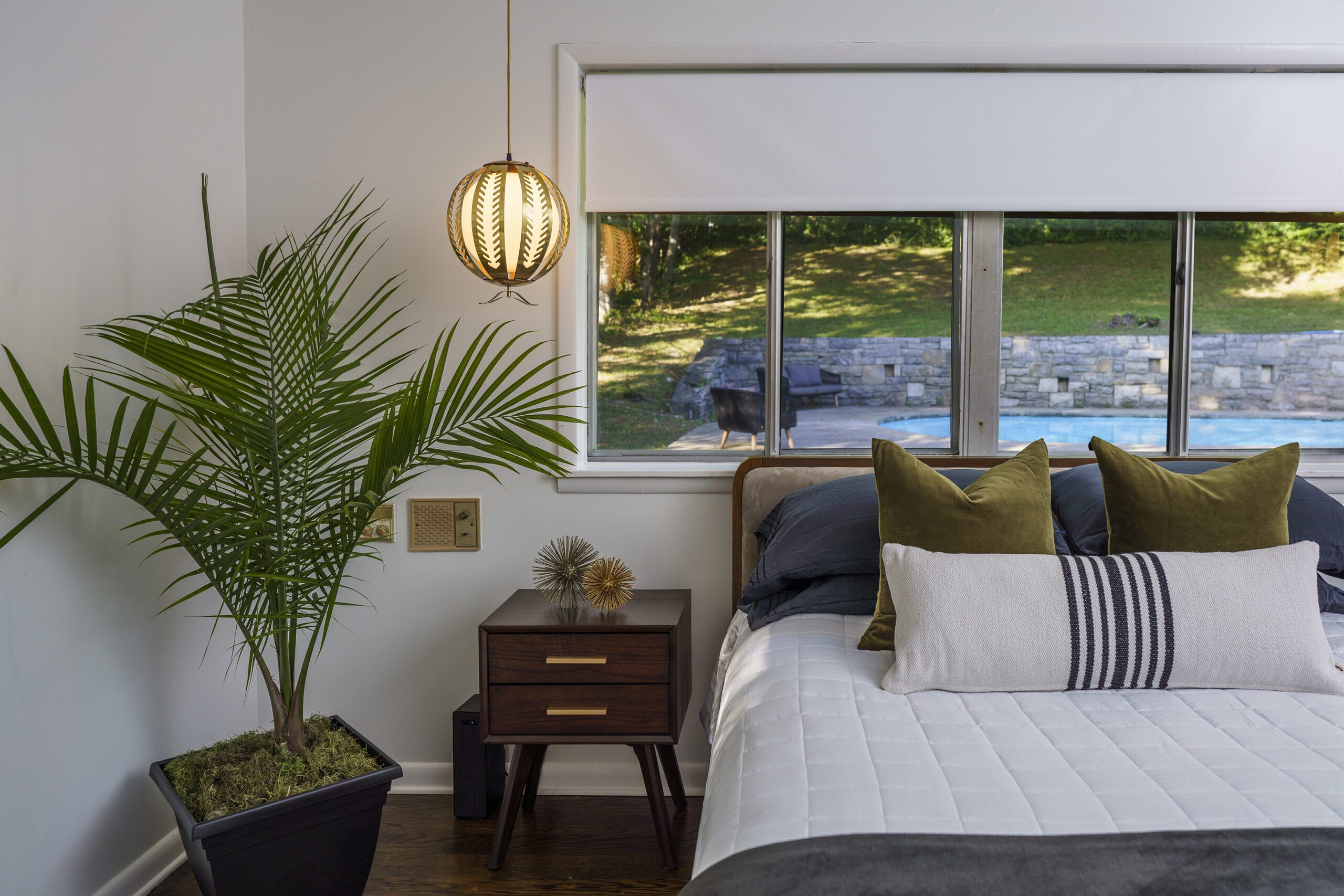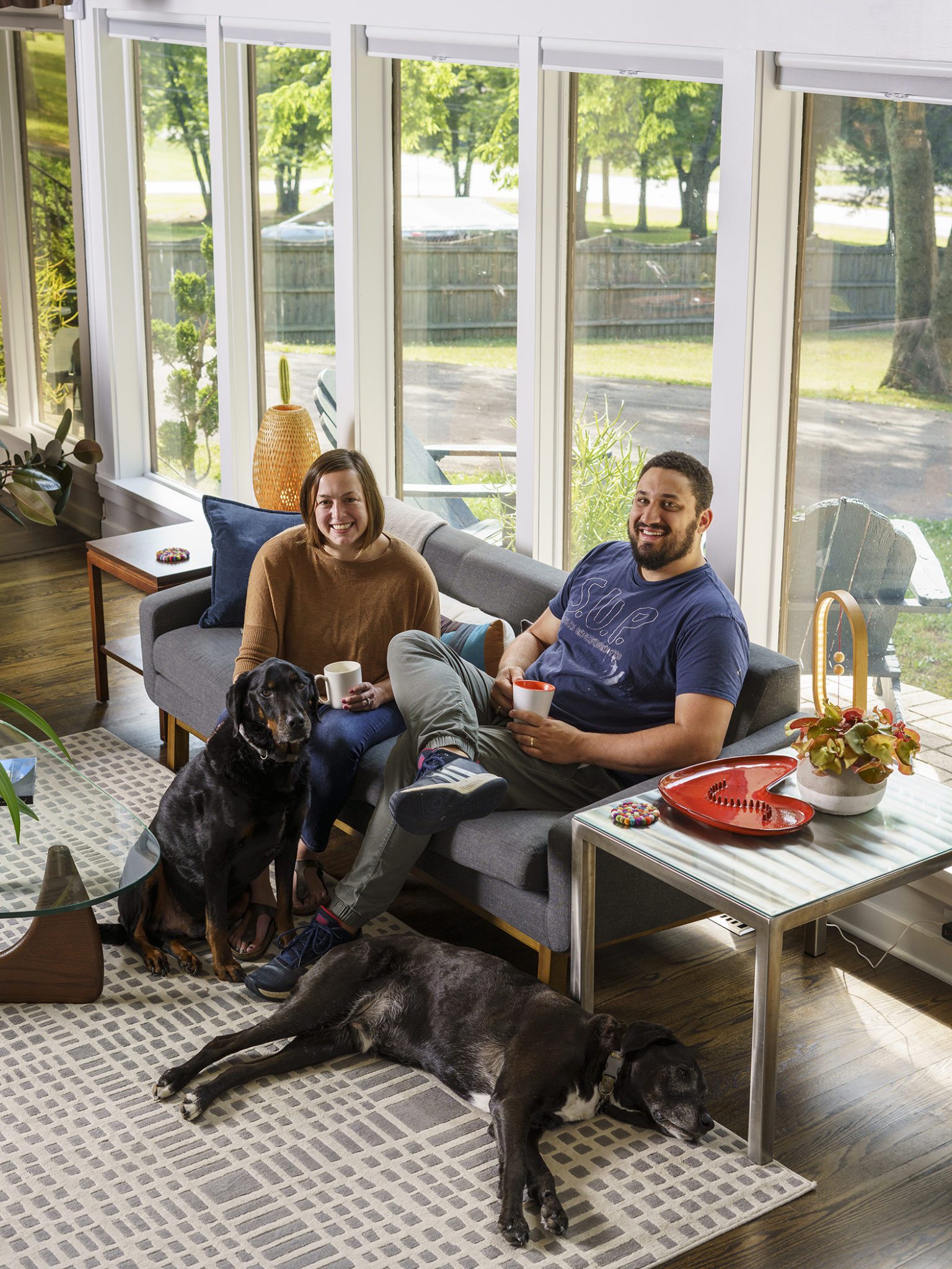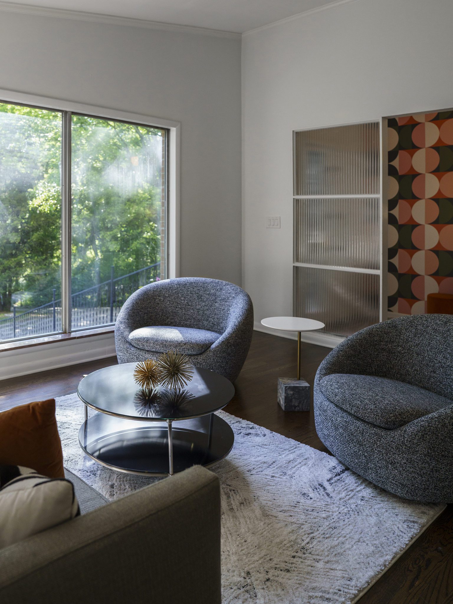 Shady tree limbs dapple the drive leading up to Bill Paine and Kristen Ware’s property. Set back from the road, the gabled roof of the 1965 mid-century split-level gem emerges from the hillside it’s built into. The front facade, mostly consisting of windows, glows from the George Nelson bubble lamp hanging inside. The lamp was a gift from Bill’s father, which is how this story gets its start. After trading in their chips on a couple homes, including a Victorian in Lockeland Springs, the couple consulted Bill’s father, David Paine, an architectural historian turned real estate agent, on landing on a home with architectural interest. They set their sights on single level ranches, loving the long and lean lines the homes are known for, with little success. Then came Capehart, who had leads on several mid-century homes in Bordeaux. Capehart brought them to the Drakes Branch property in Enchanted Hills a couple times before they put in an offer. This issue was that the current homeowner wanted a certain amount, but it had to be appraised. Capehart compiled a package of evidence that hinged on statistics about homes in historically Black neighborhoods not appraising for their true value. Her research helped close the deal—and the divide between the asking price and the bank appraisal.