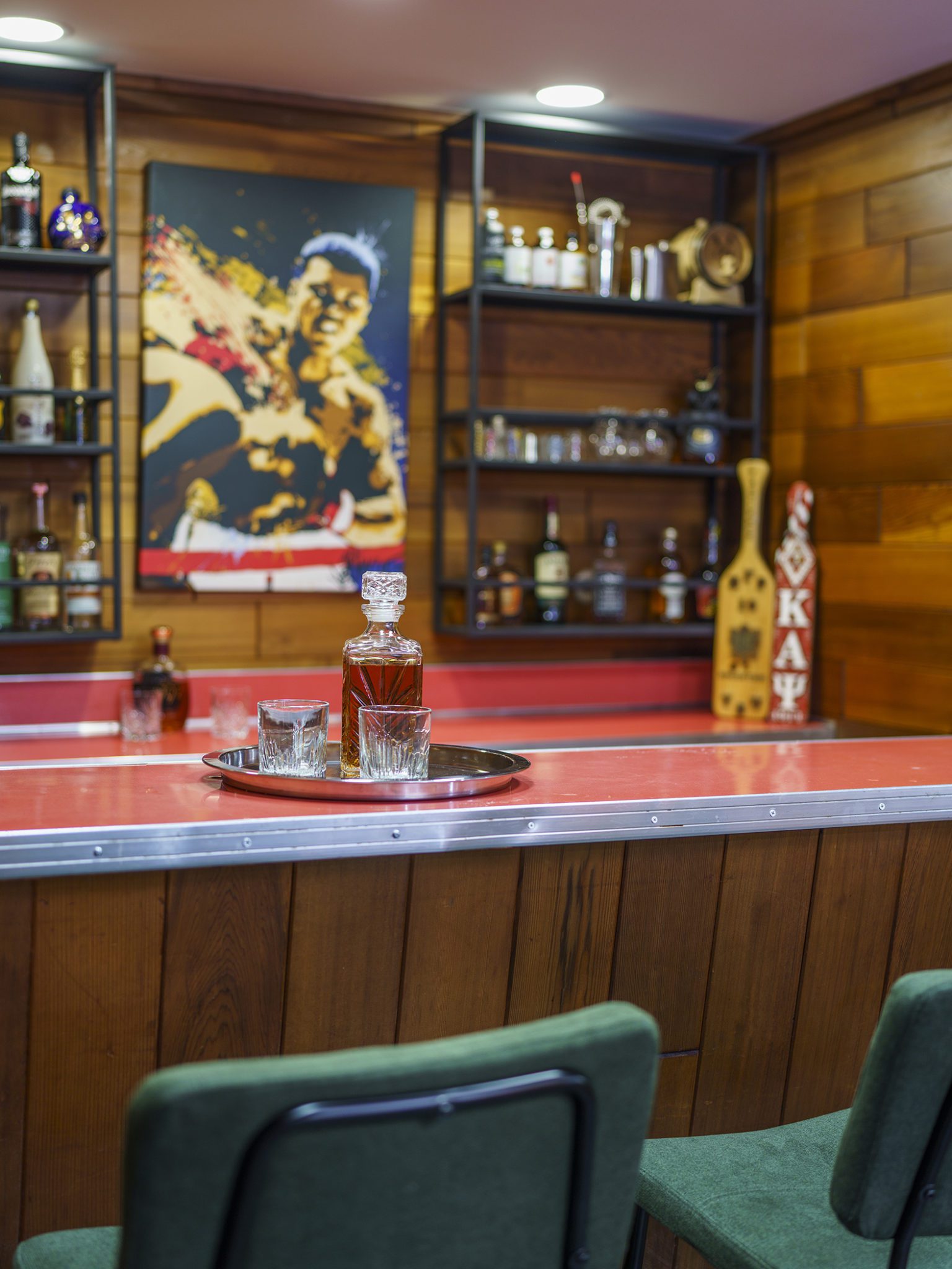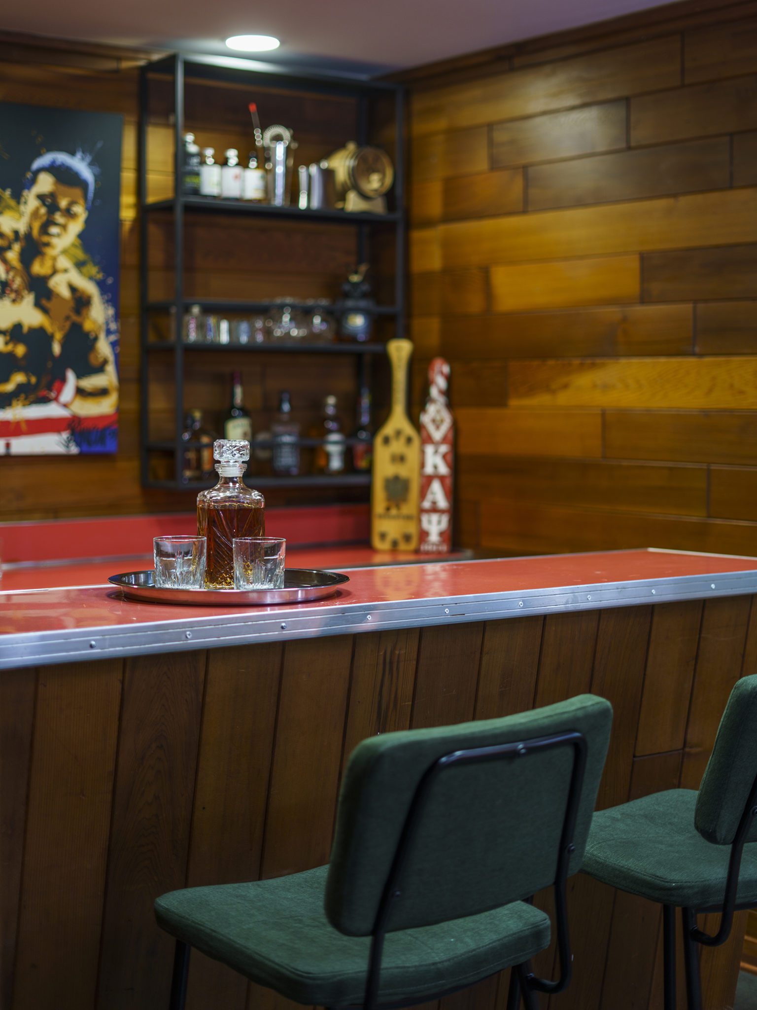 The Moores, just like Rosemary Lewis, love to entertain. When they moved in, they found a collection of old photos that detailed the Lewises’ exuberant social life: backyard barbecues and pool parties, costume parties and Christmas gatherings in the living room. “They kicked it, the people of this area. They seriously had parties,” Patience said. “They had to entertain in their homes because they couldn’t go out downtown.” Vibrant celebrations and cherished memories had been lived out in the home, and the Moores are proud to carry on that legacy. Over last year’s pandemic, they hosted outdoor movies in the driveway, and their side patio set the stage for al fresco dining and bonfires. They turned the lower level into a media room and kept the original built-in bar. “Everyone who has been to our house has had fun. We just hope that continues.”