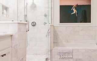“We made a master bath that felt bright and airy, and that had enough storage,” she says. “It is a master bath that you would want to have.”