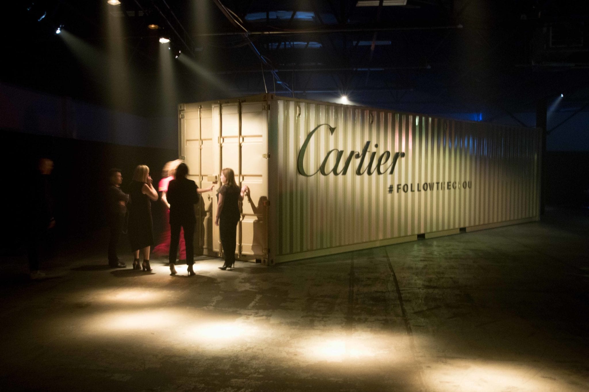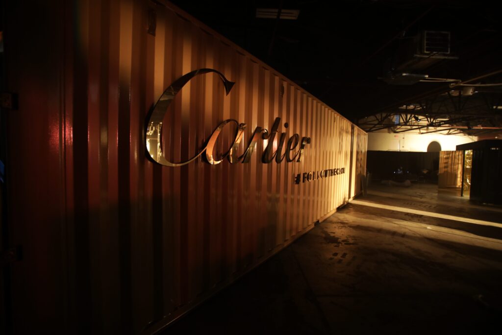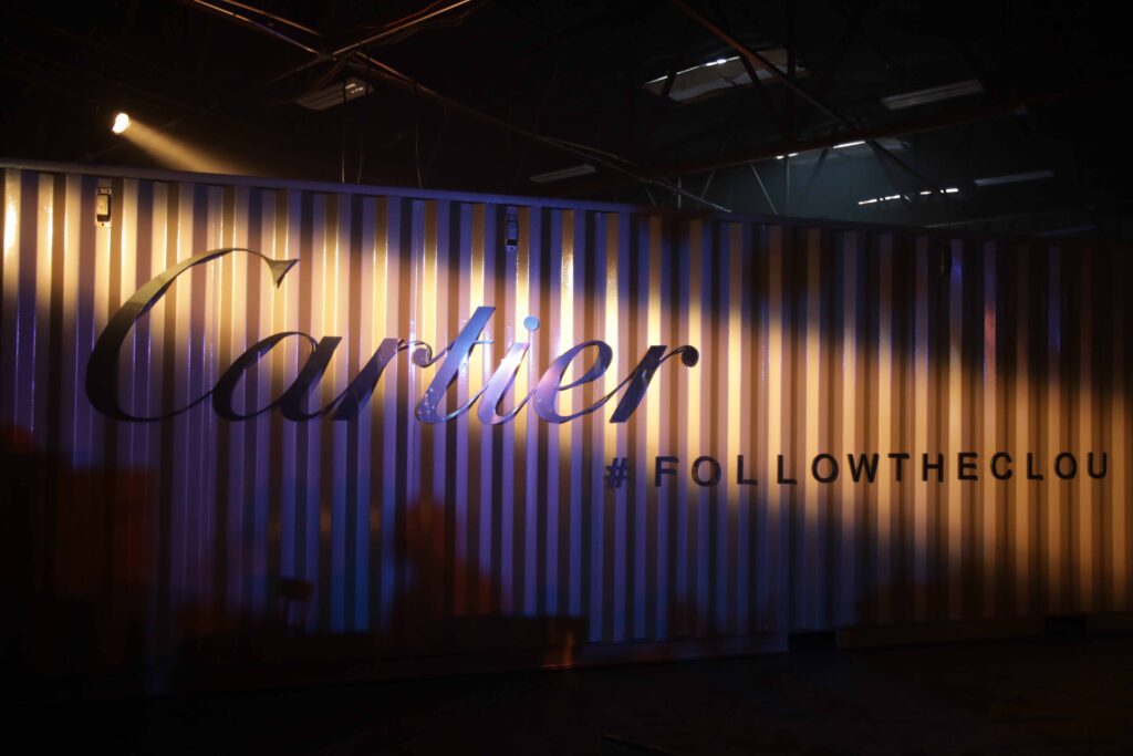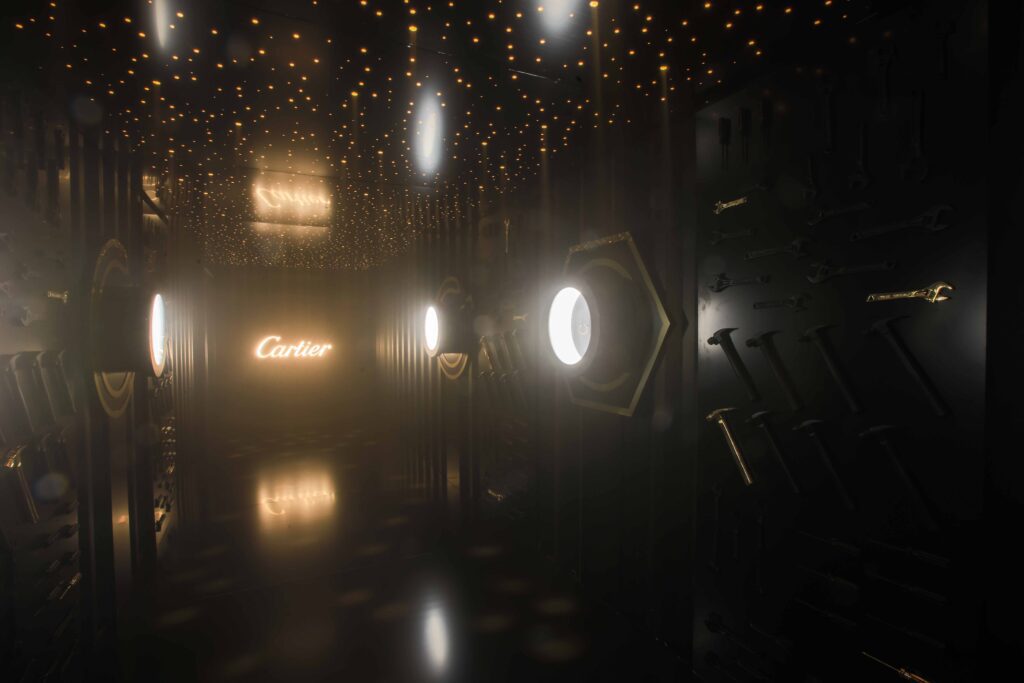A matte black truck transporting a gold container with the Precious Garage experience traveled to Nashville. Inside the gold container is a concept designed for Cartier by New York-based artist Desi Santiago. Known for his scenic performance work and cutting-edge aesthetic, Santiago stages installations shaped by references to the worlds of fashion and nightlife.