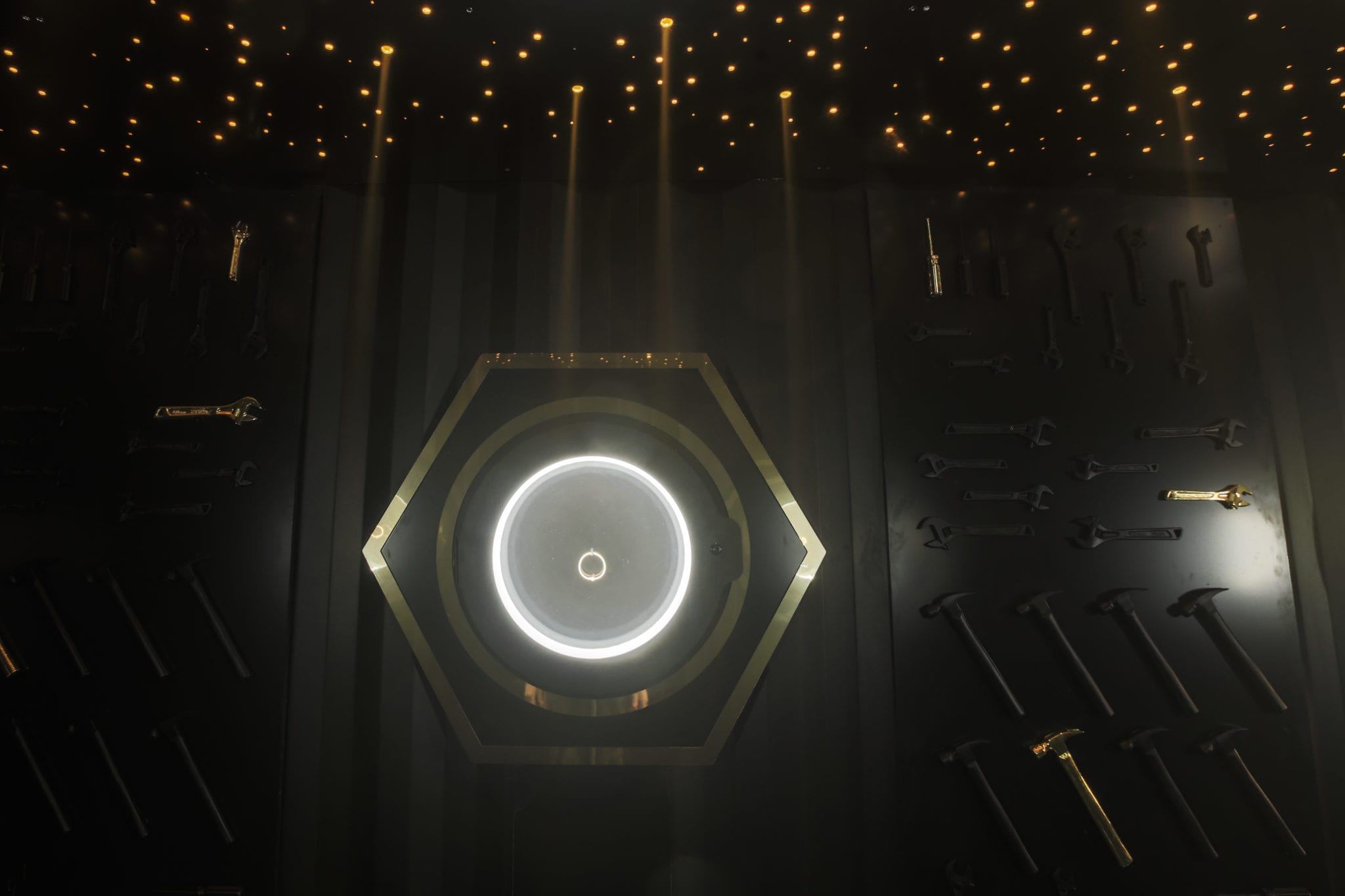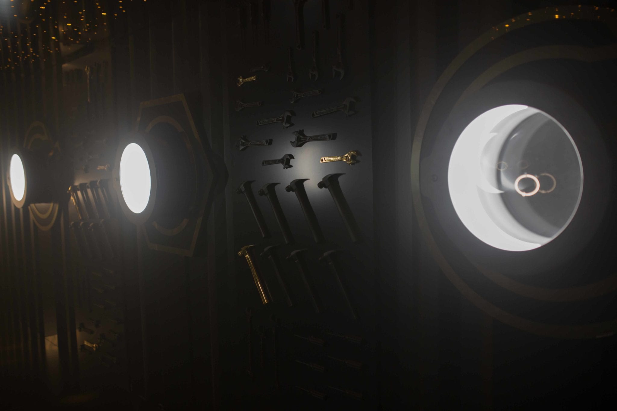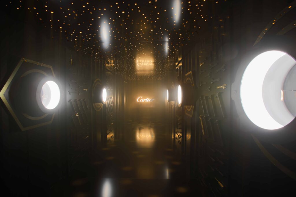 A matte black truck transporting a gold container with the Precious Garage experience traveled to Nashville. Inside the gold container is a concept designed for Cartier by New York-based artist Desi Santiago. Known for his scenic performance work and cutting-edge aesthetic, Santiago stages installations shaped by references to the worlds of fashion and nightlife.