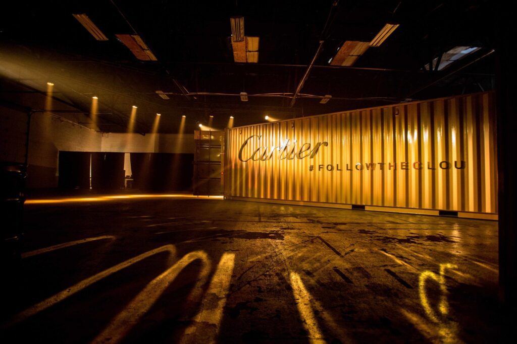 A matte black truck transporting a gold container with the Precious Garage experience traveled to Nashville. Inside the gold container is a concept designed for Cartier by New York-based artist Desi Santiago. Known for his scenic performance work and cutting-edge aesthetic, Santiago stages installations shaped by references to the worlds of fashion and nightlife.