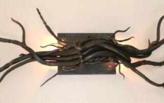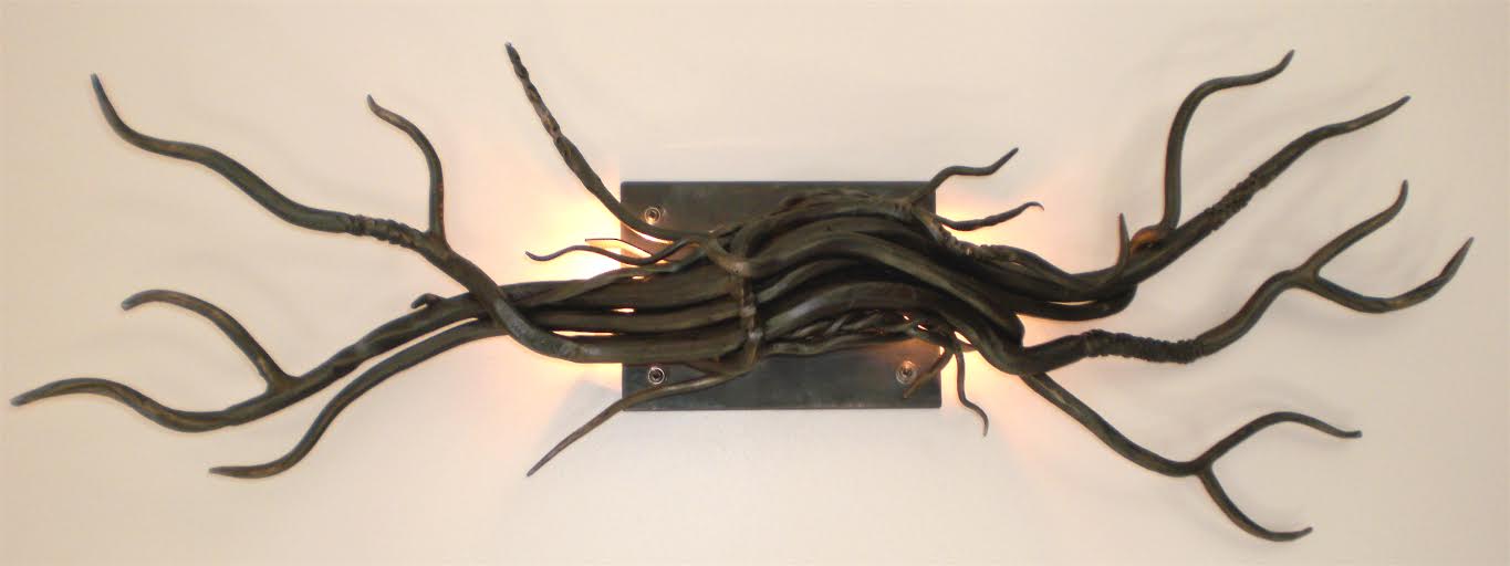 Conrad Tengler pendant chandelier commissioned by Revival CHATTANOOGA. The demand for custom home fixtures has interior designers and architects partnering with artisans to enhance a home's style.  Revival, one of Tennessee's premiere design studios and furnishings shop, has been working with builder blacksmith Conrad Tengler and his design studio, Black Sheep Forge, for more than ten years.  One of