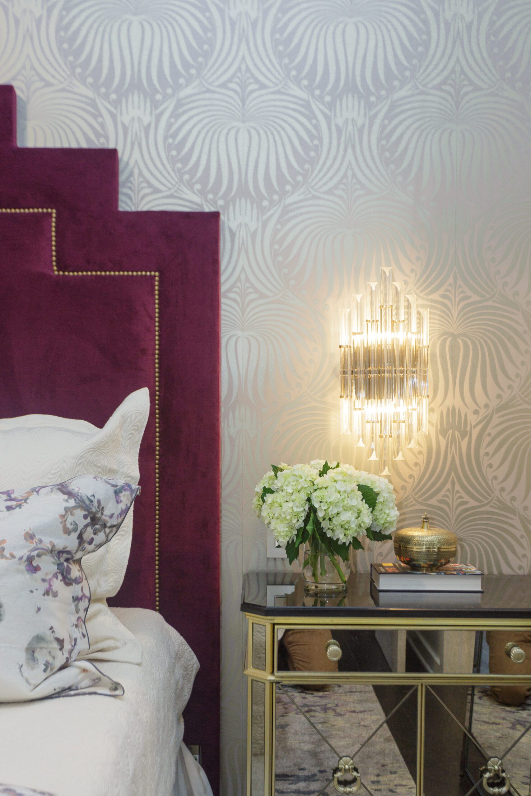 “When we met they wanted everything to be white and gray, so I was a little nervous about” infusing rich blues and purple velvet, she says. “But there was no convincing. They looked at it and they loved it, which was fantastic.”