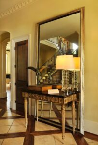 “Because we have all different kinds of clients and we have all different kinds of tastes, I like to mix things. You know, I’ll take a copy of a 16th century bench and put it next to a half-round that was done in the late 18th century, so it’s contemporary, yet traditional,” she says. “And then next to that there could be a tufted chair with an ottoman. I like mixing.”
