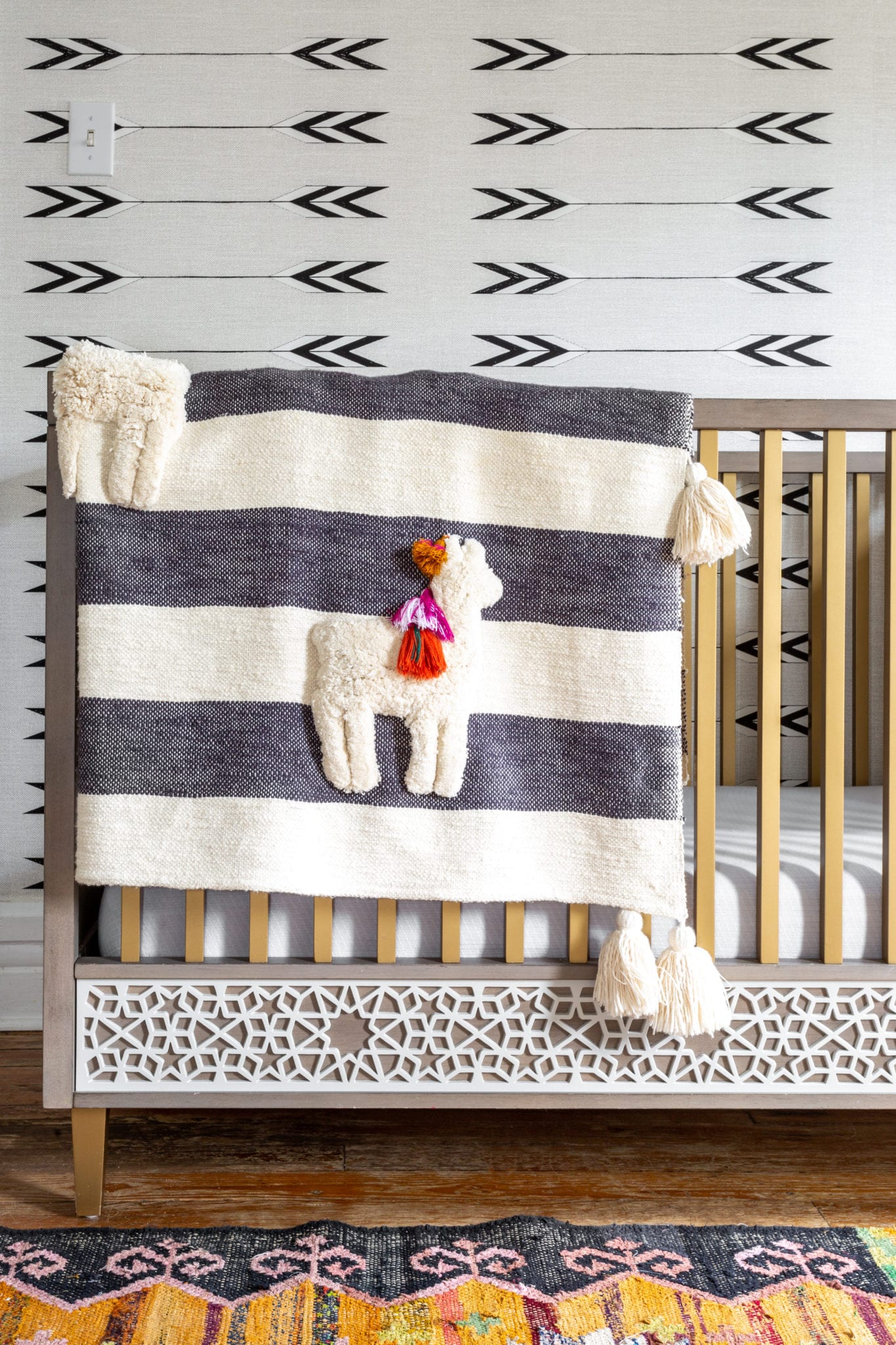 “That set the tone for the kind of fun and funk that we wanted to bring throughout the home,” she says. “And it showed me they were on board with color and pattern. They had a bold bision about when people first come into your home, what do you want it to really say?”