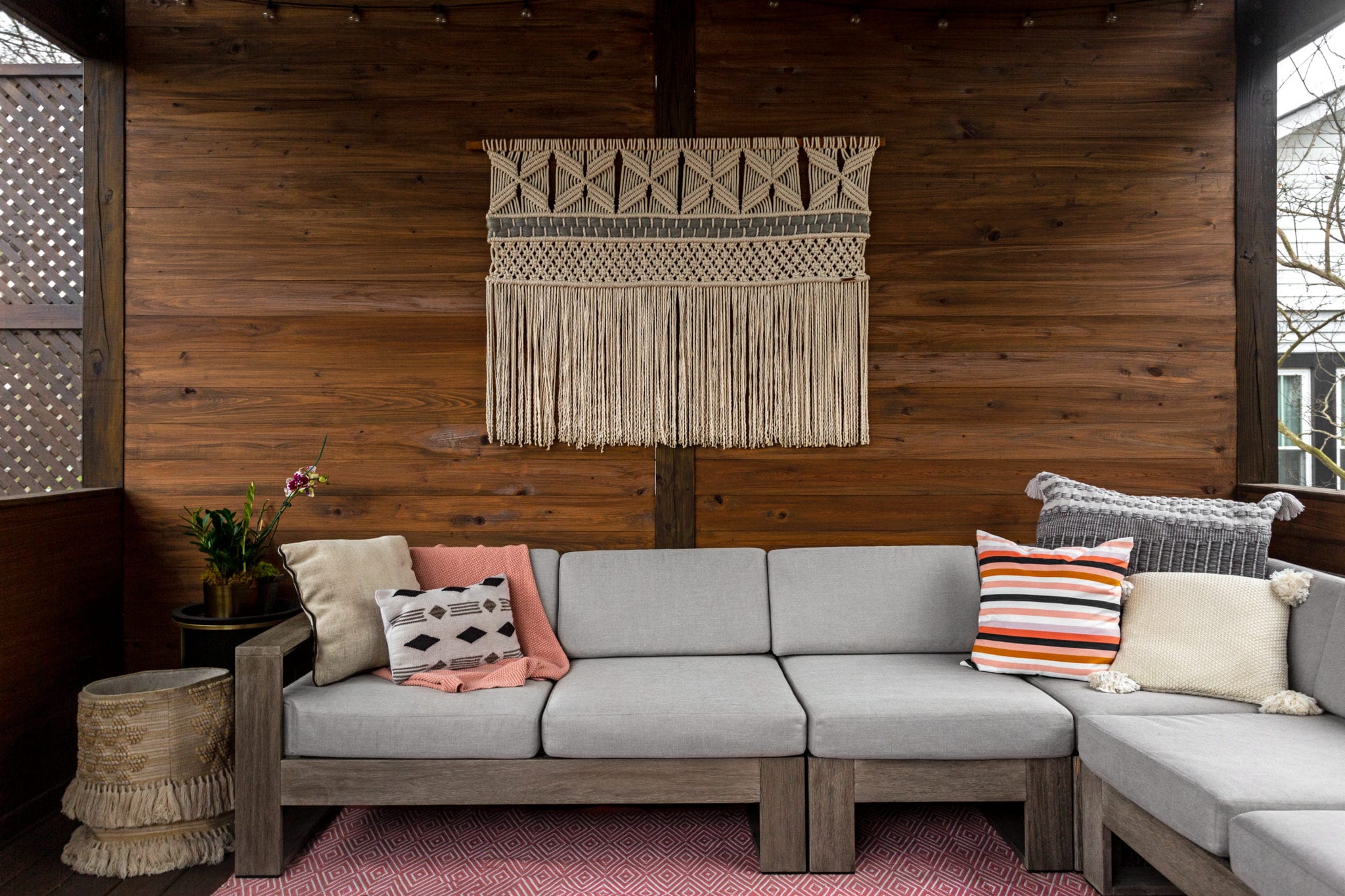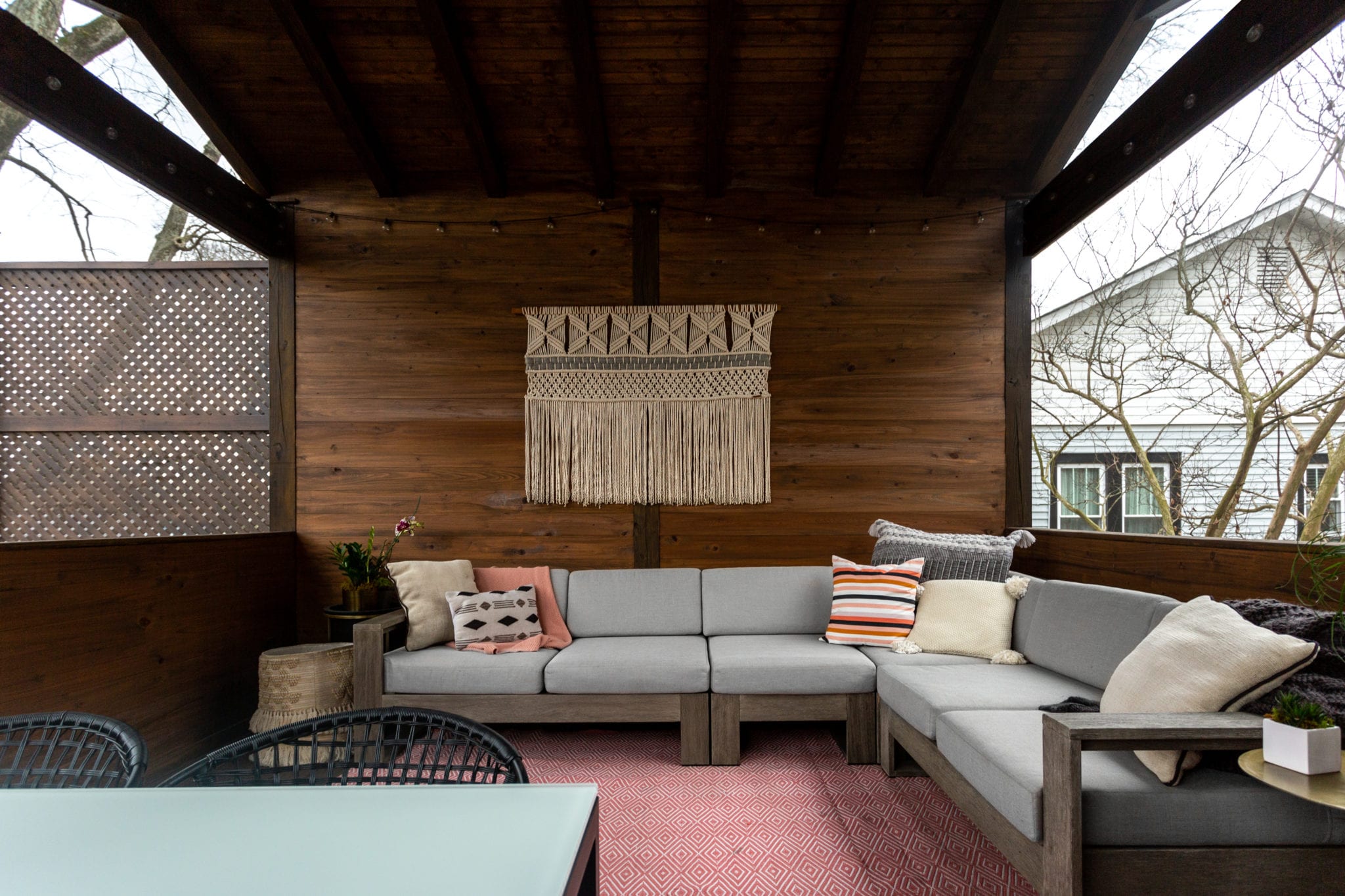 Thompson says when they started the project the couple had no children, but they knew they were coming and designed accordingly. Today, they have two little ones, a boy and a girl, and together they all enjoy the large, covered outdoor space and basement buildout with extra closets.