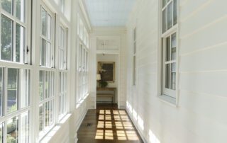 The roughly 800-square-foot floorplan of the suite was reimagined to maximize every inch available, with a dividing wall added to the bedroom to create a large walk-in closet and entry. The kitchen and bathroom footprints were reconfigured to improve functionality, and a connecting vestibule was added to make the guest suite accessible from the main house.