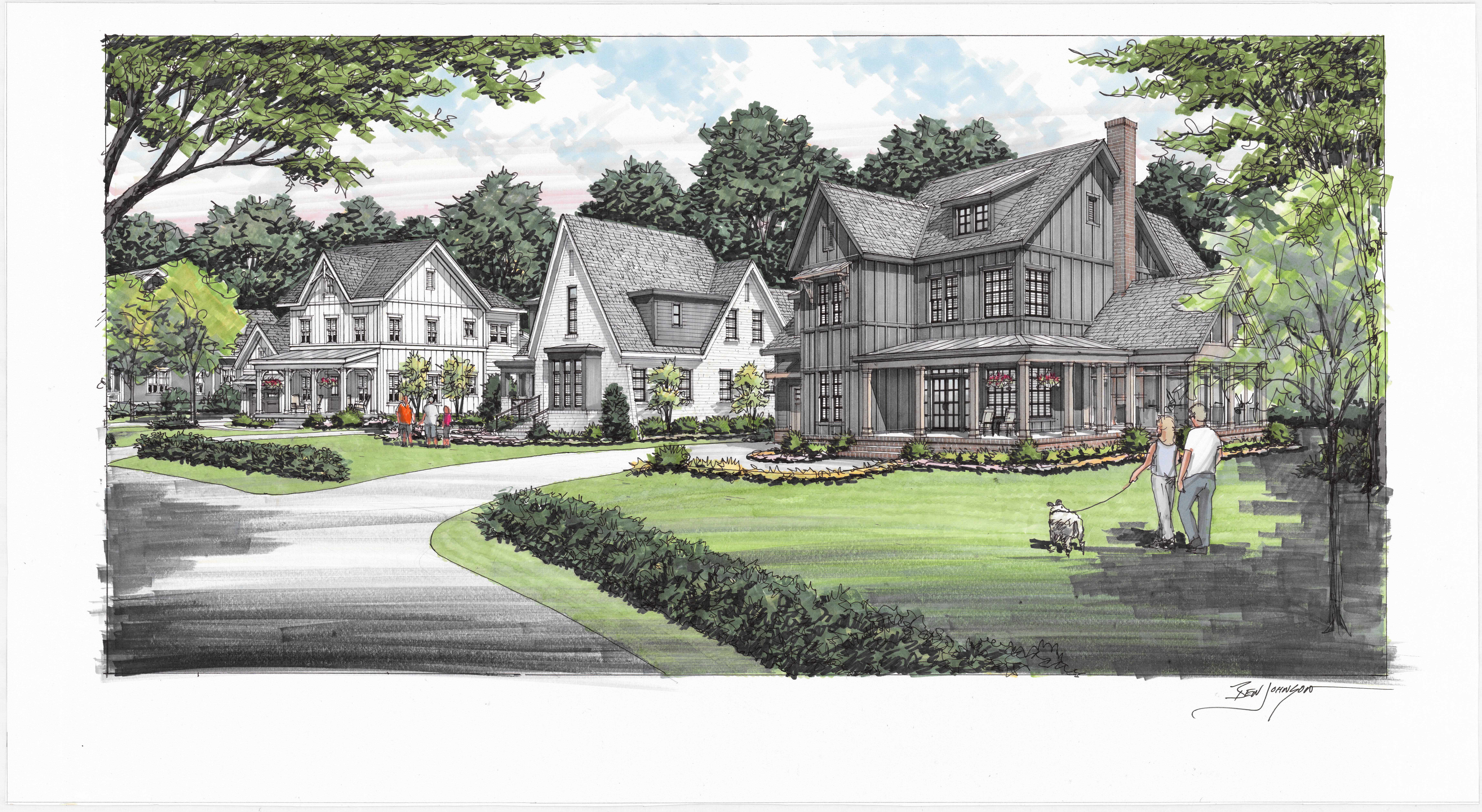 City homesteads will range from 1/3 of an acre to one acre, and renderings reflect styles that range from an English Country style home to charming modern farmhouses.