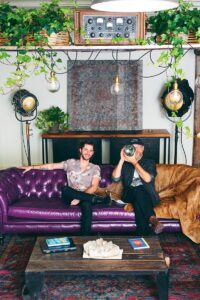 Gill started off in visual arts, videography and production design, which is what brought him and Dukes together. Gill also builds and designs furniture, and he taught himself the ins and outs of woodworking and metalworking. Now he builds large-scale fabrication jobs for architects, like big floating steel staircases. He also does large-scale art, with a 20- by 30-foot installation at Burning Man earlier this year.