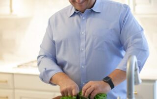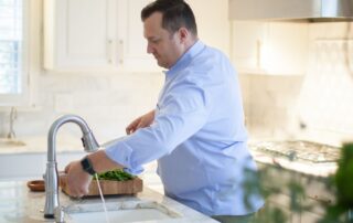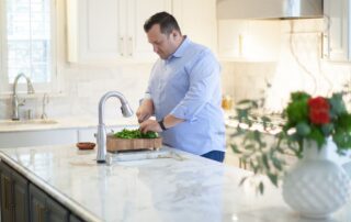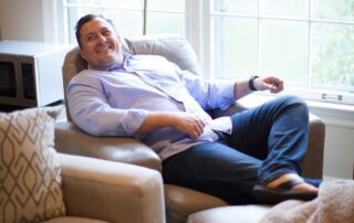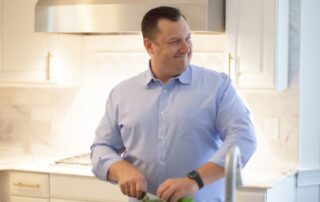 “We love this house. We have a great bonus room upstairs that the kids love, and after a rough week, I crank the air down to 72 degrees, turn on the television and melt into my chair. I just want to nest and chill,” he says, laughing.