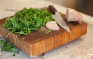 Brumm makes the kids a hot breakfast each morning, but his real home cooking comes when he and his wife entertain friends, sometimes three to four times a month. For that, everyone either crowds into the kitchen or heads outdoors where he keeps his garden of herbs, peppers and other essentials.