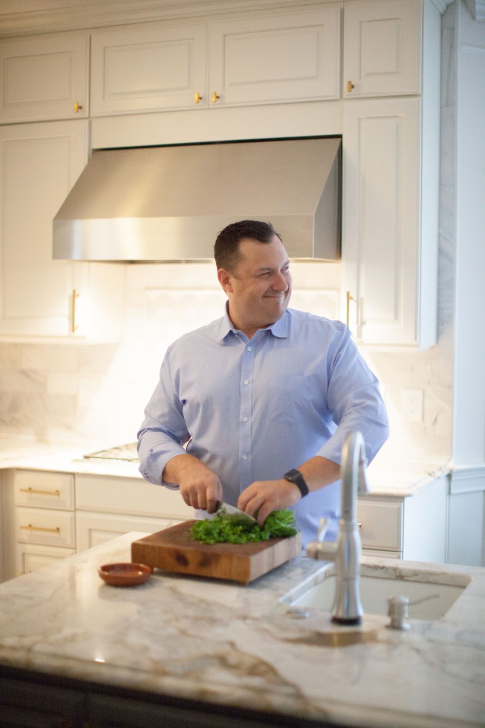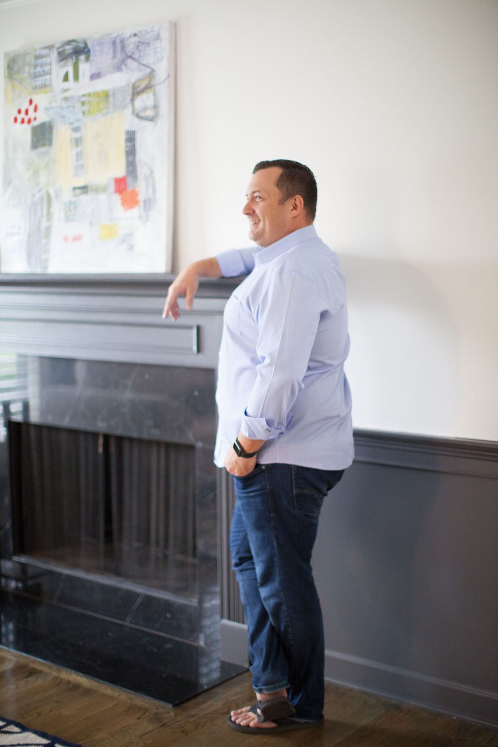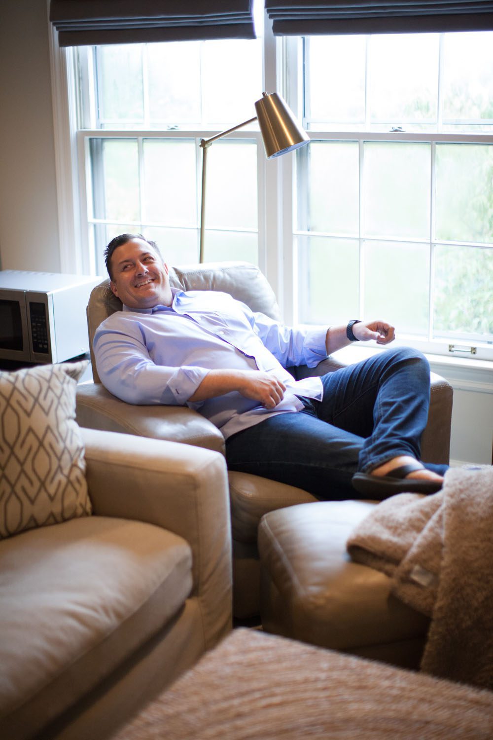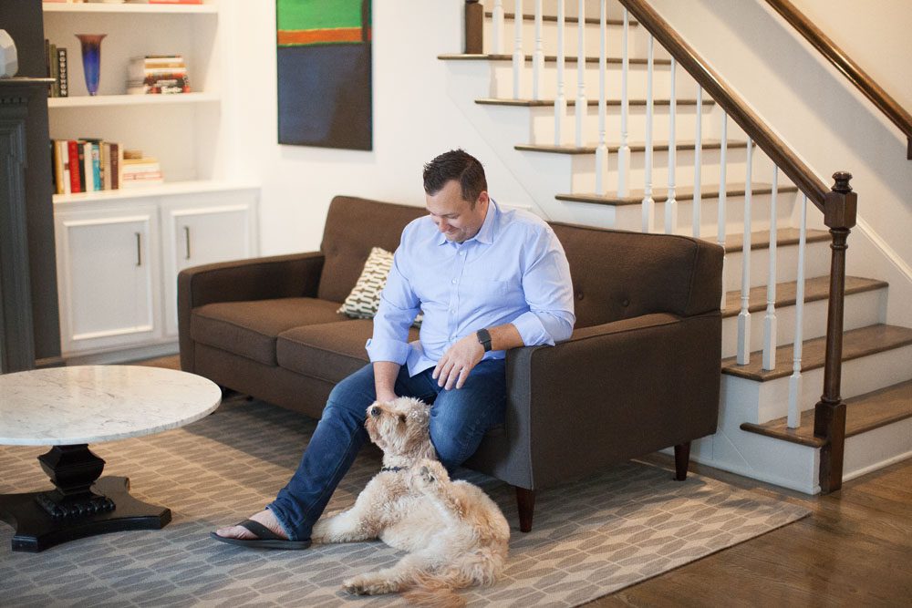 “We love this house. We have a great bonus room upstairs that the kids love, and after a rough week, I crank the air down to 72 degrees, turn on the television and melt into my chair. I just want to nest and chill,” he says, laughing.