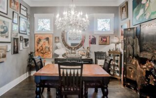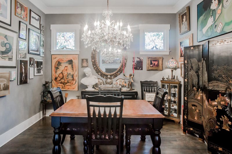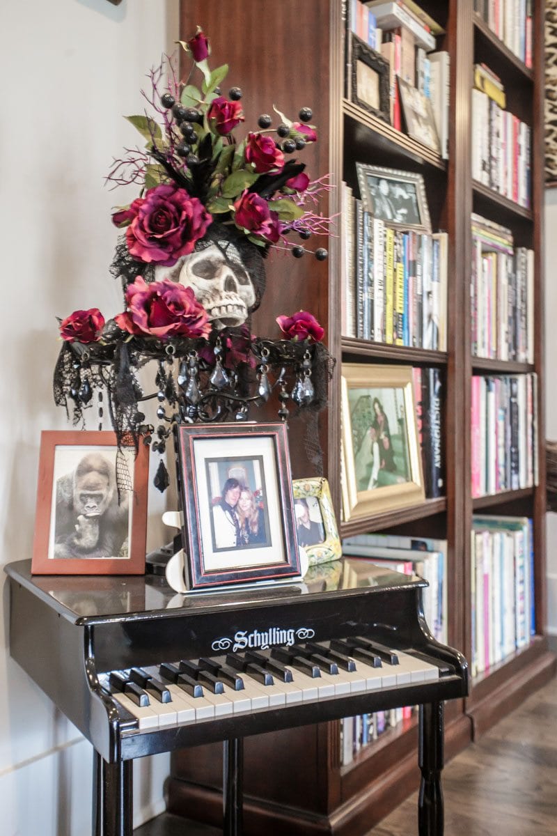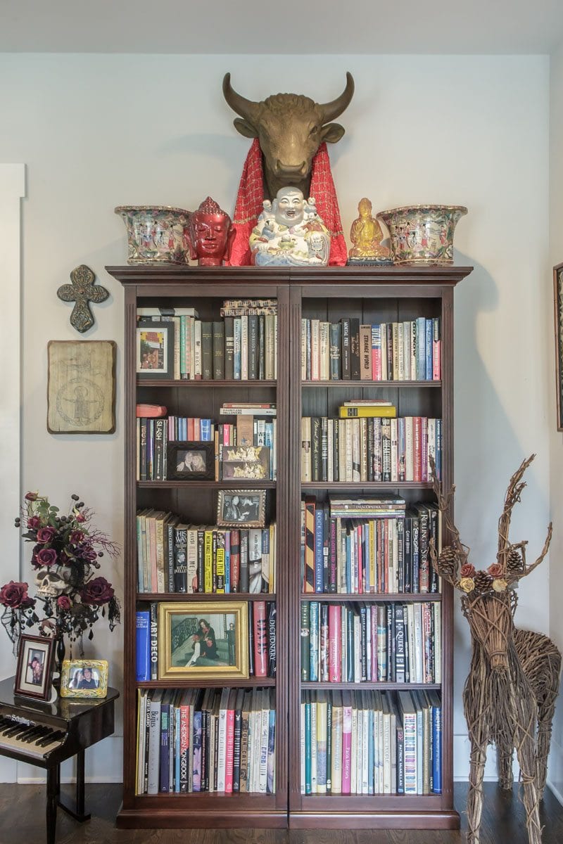 Her home is an eclectic collection of family heirlooms and rock ’n’ roll history, with a Restoration Hardware chandelier thrown in. It was one of the first pieces Buell purchased when arriving.