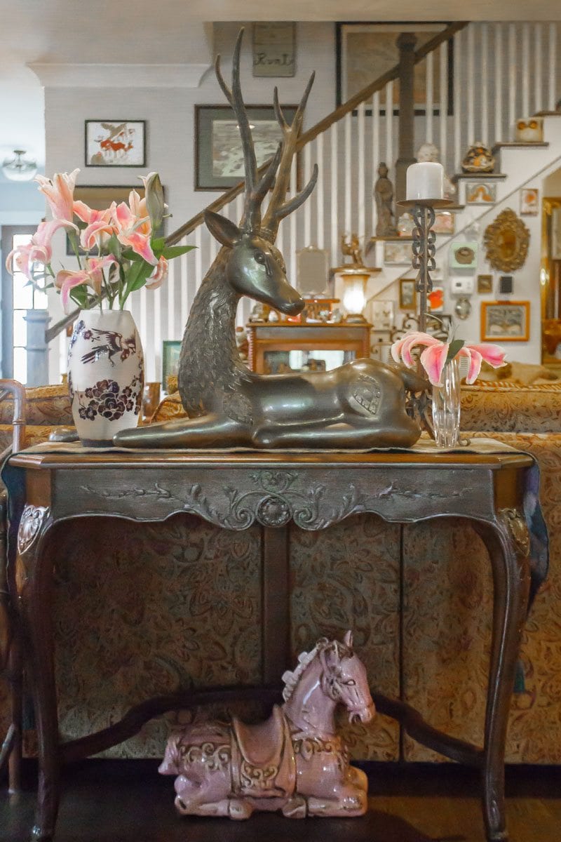 It is that juxtaposition of memories and mementoes with modern humor and eccentricity that makes their home so familiar and fun. Look just a little closer in any direction and true treasures are revealed, from the collections of marble eggs passed down from her mother, Protocol School of Washington founder Dorothea Johnson, to the middle-school photos of her daughter, actress Liv Tyler.