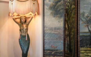 Like the photograph of Joe DiMaggio and Marilyn Monroe in her dining room that used to hang in the couple’s own dining room in Connecticut. Or her mother’s silver collection. Or Chinese urns filled with pet ashes. Or the original art gifted from exes like Mick Jagger. Or photographs with her and Hugh Hefner. It’s not exactly the life history that just anyone can acquire over the years.