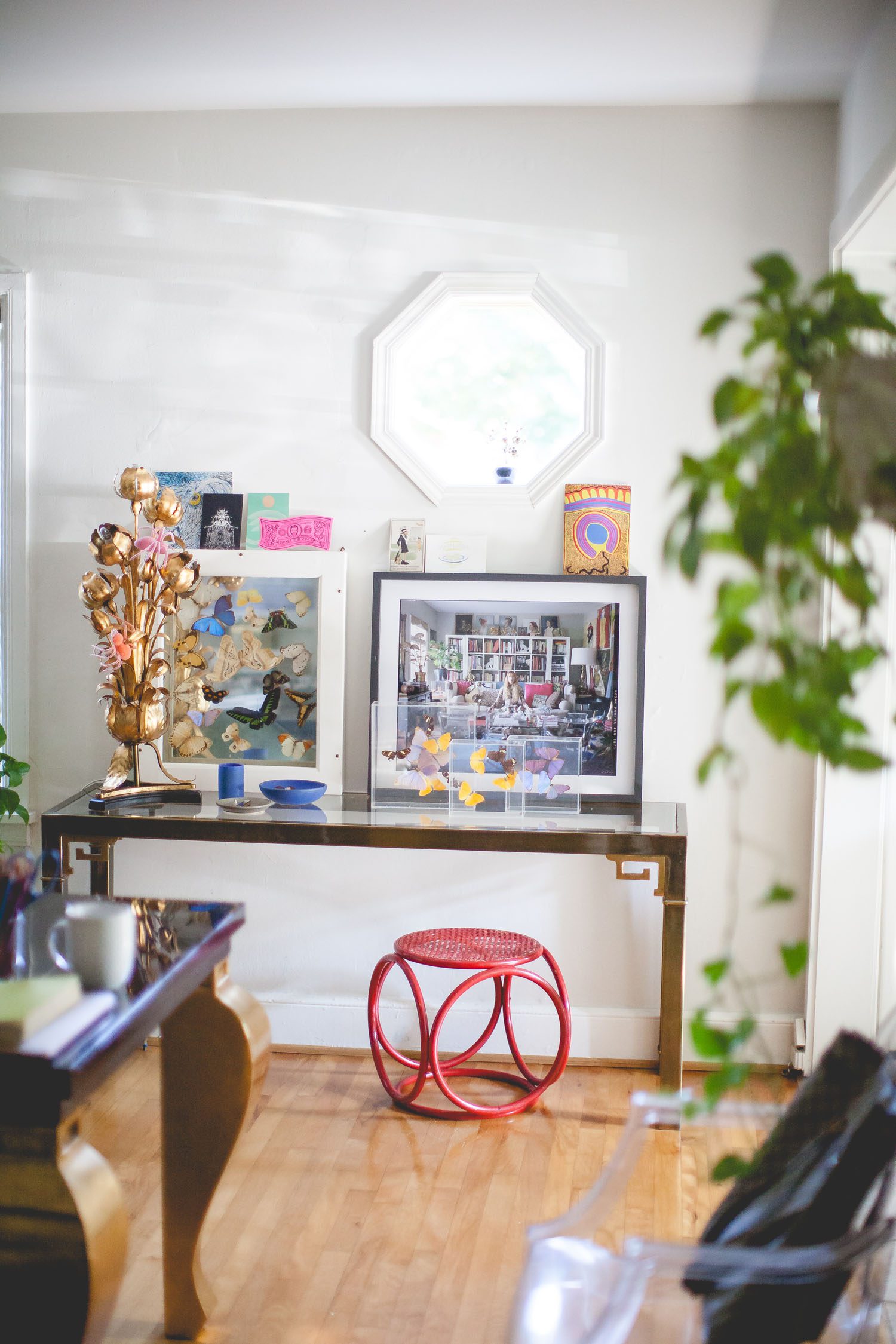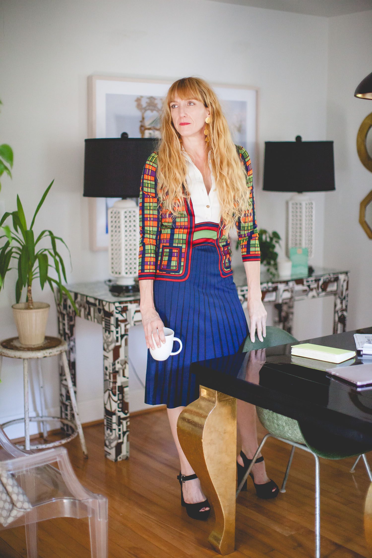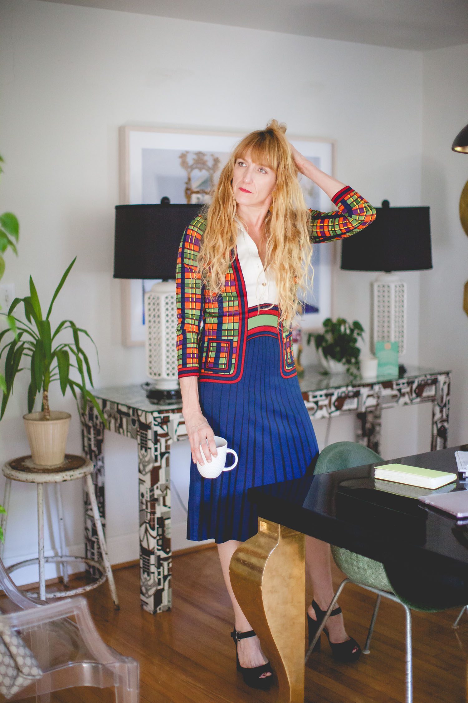 My style really ranges. I either go high or low. I wear a lot of dresses and I buy a lot of them, usually from the ’80s. My friend Bobby was just over here, and we’re both maximalists. I don’t want less. Minimalism? No. I want more. I just love having stuff around me. I love finding themes and running with them. I don’t have any one decorating ethos. I think that if you love it you’ll find a place to use it, and I always do. Things start to fade out every once in a while, but for the most part things stay with me for a long while.