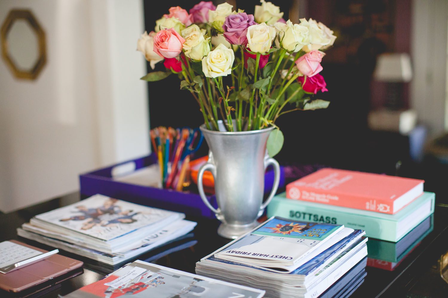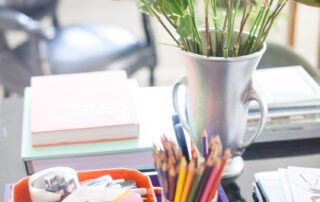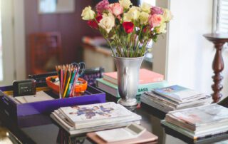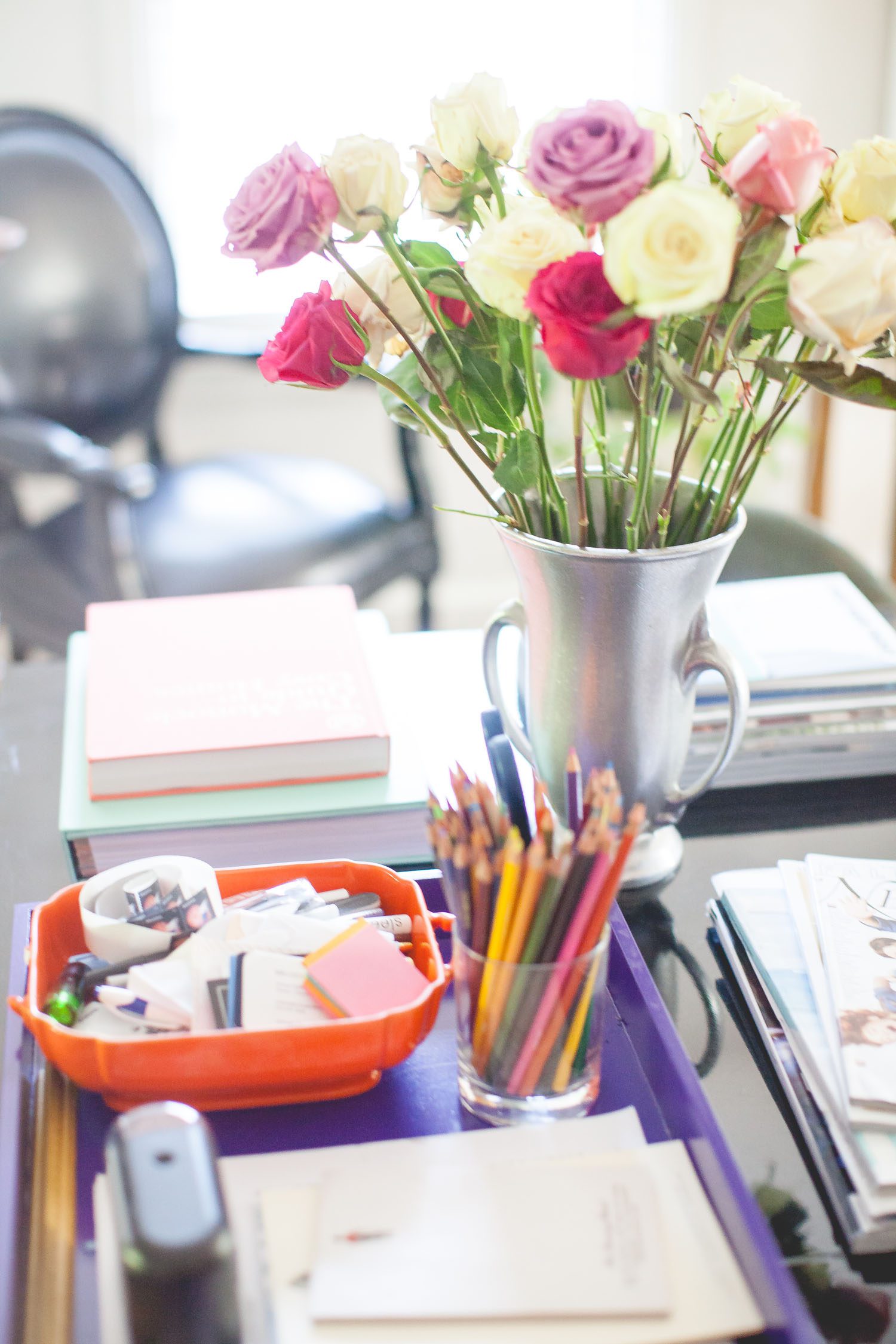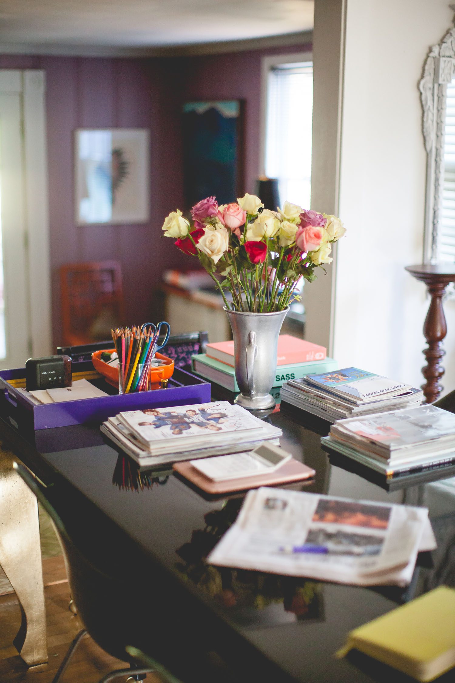 “I’ve got a team of three, and we can all four sit around the table and work, which is nice. People will come in for meetings, and this is where we do it. It’s also where I eat, it’s where I watch TV, it’s where I do my adult coloring book, it’s where I do a little bit of everything,” she says.