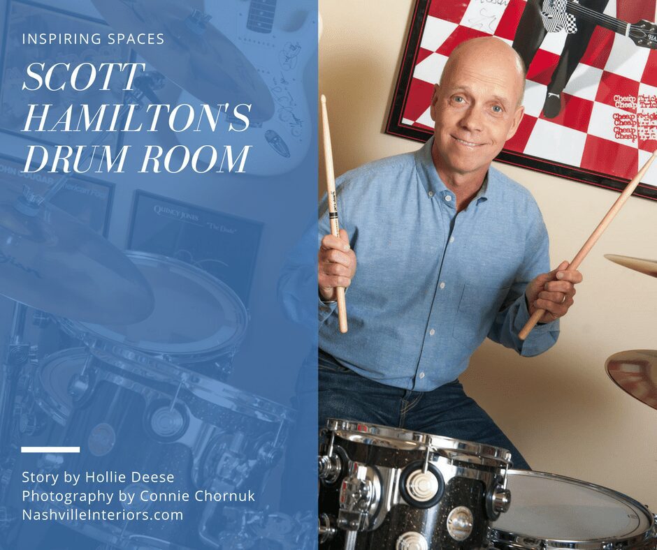 With all that going on, no one could begrudge Hamilton for retreating to a space all his own. Originally built to be a safe room – no windows, all interior walls in the basement – it now has walls covered in records, Hamilton’s drum kit and his always-expanding collection of signed guitars (Kiss, REO Speedwagon, Aerosmith, Cheap Trick).