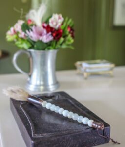 9. We were taken by the color ‘Edamame’ by Sherwin Williams that designer Robin Praino chose for the upstairs Ladies Study. Like Virginia Woolf said, every woman needs a room of her own. The room is tucked into the upstairs where a canopy of trees can be seen outside the window, so Robin brings that leafy green inside. Like each of the upstairs room, this one has its own personality and this one is fully realized with furnishings by Stray Dog Designs, Chattanooga artist Addie Chapin, and Huck & Peck.