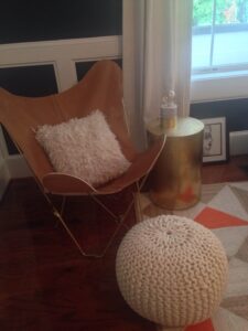 5. The Mid-Century modern Library by Tiffany Anich with Southerly Abode offers a fun flashback with the use of a classic butterfly chair and vinyl record player. Vinyl is the new home theater, of course, for many rediscovering the album cover as an art collection, and the distinct sound. We recommend Sarah Vaughan’s 1957 vinyl release ‘Swingin’ Easy’; and look, there is Sarah adding to the butterfly chair mystic. We also appreciated the eclectic artifacts throughout the room that add to its accessibility and warm welcome right off the foyer.